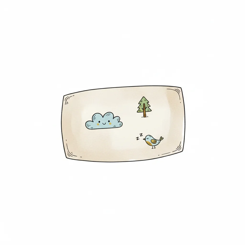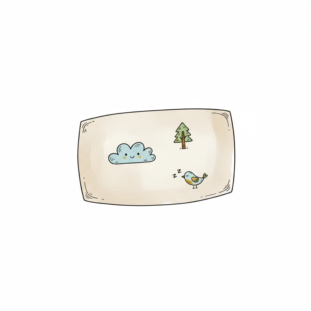 Illustration eines Tellers mit Wolke, Baum und schlafendem Vogel.