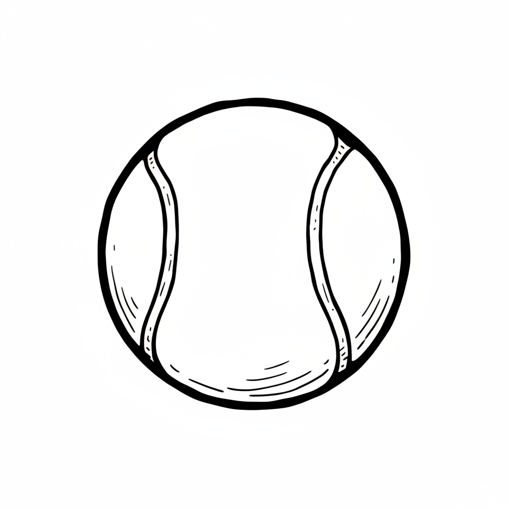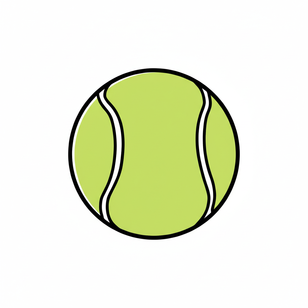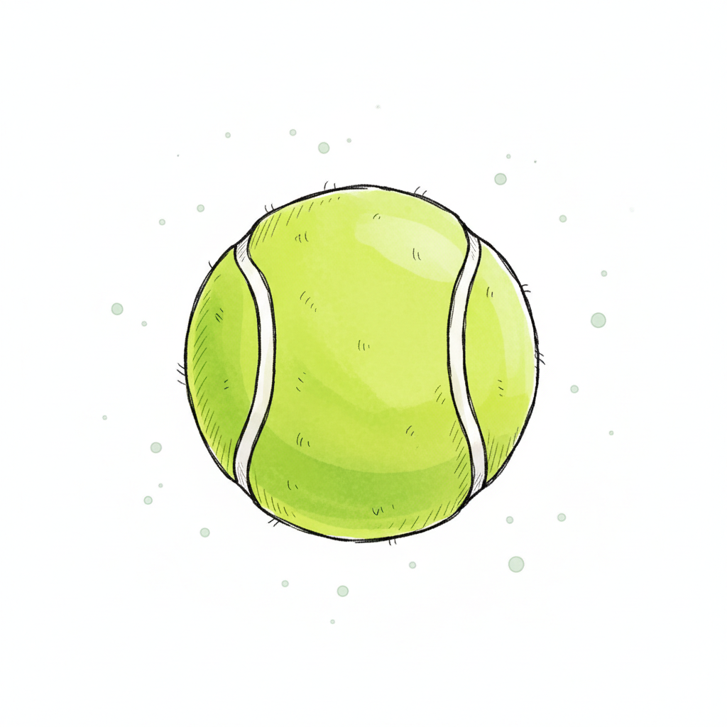 Ein einfach gezeichneter Tennisball auf weißem Hintergrund.