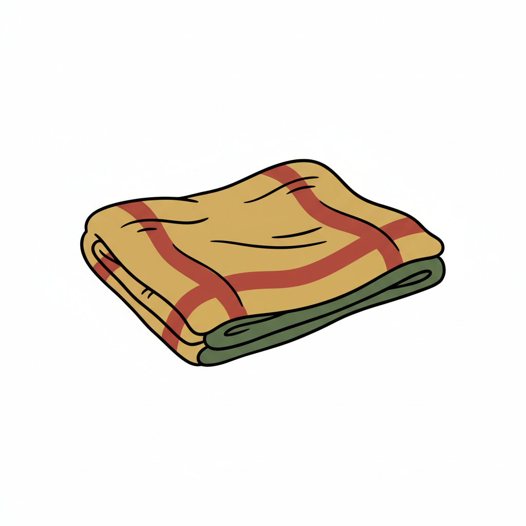 Eine gewellte, zusammengelegte Textilfläche, minimalistisch gezeichnet.