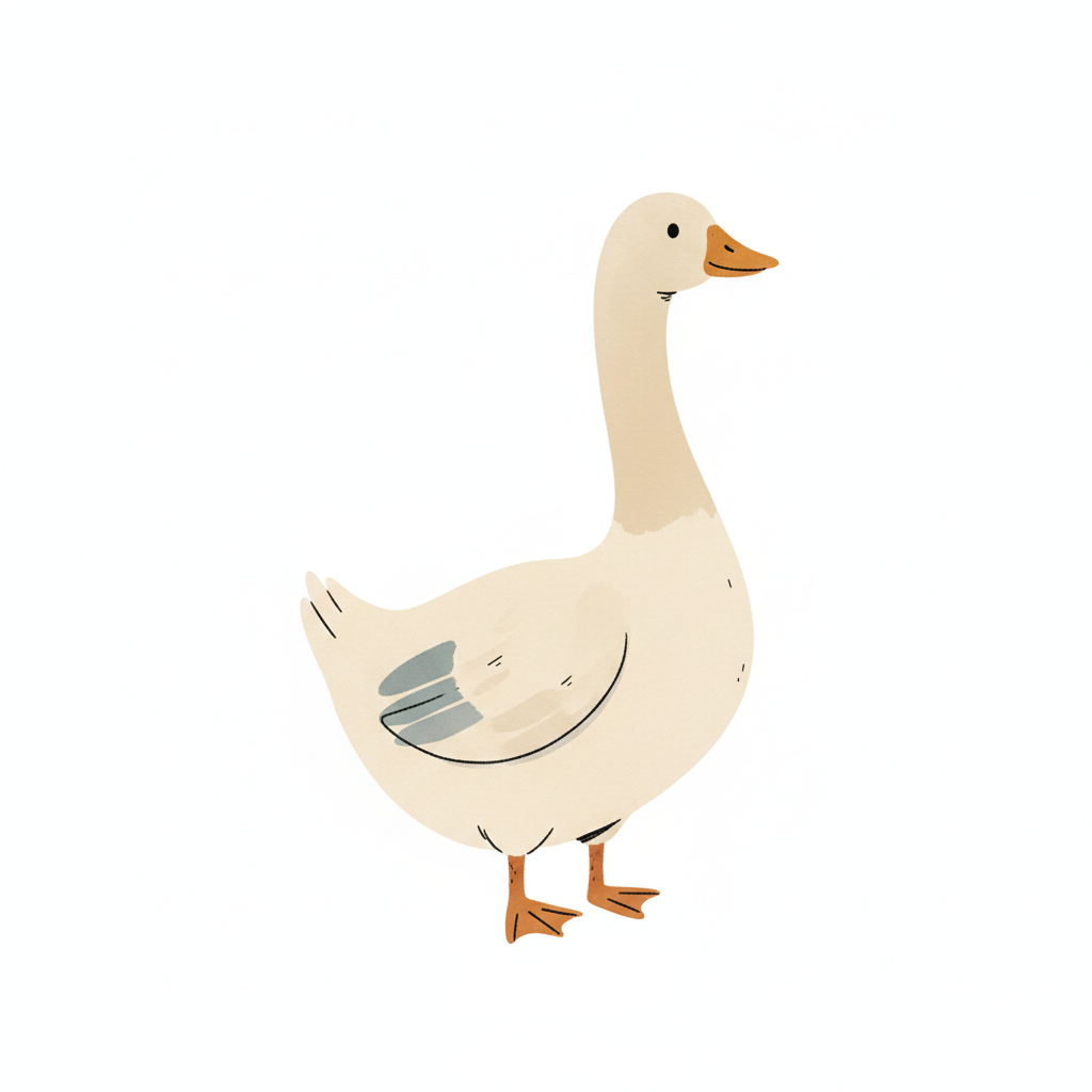 Eine niedliche, cartoonhafte Gans mit hellem Gefieder.