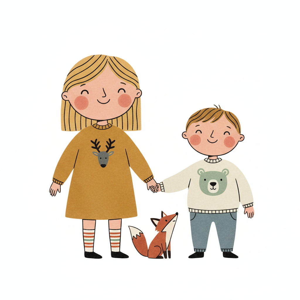 geschwister kinder illustration tiere nordic-bilderbuch-stil