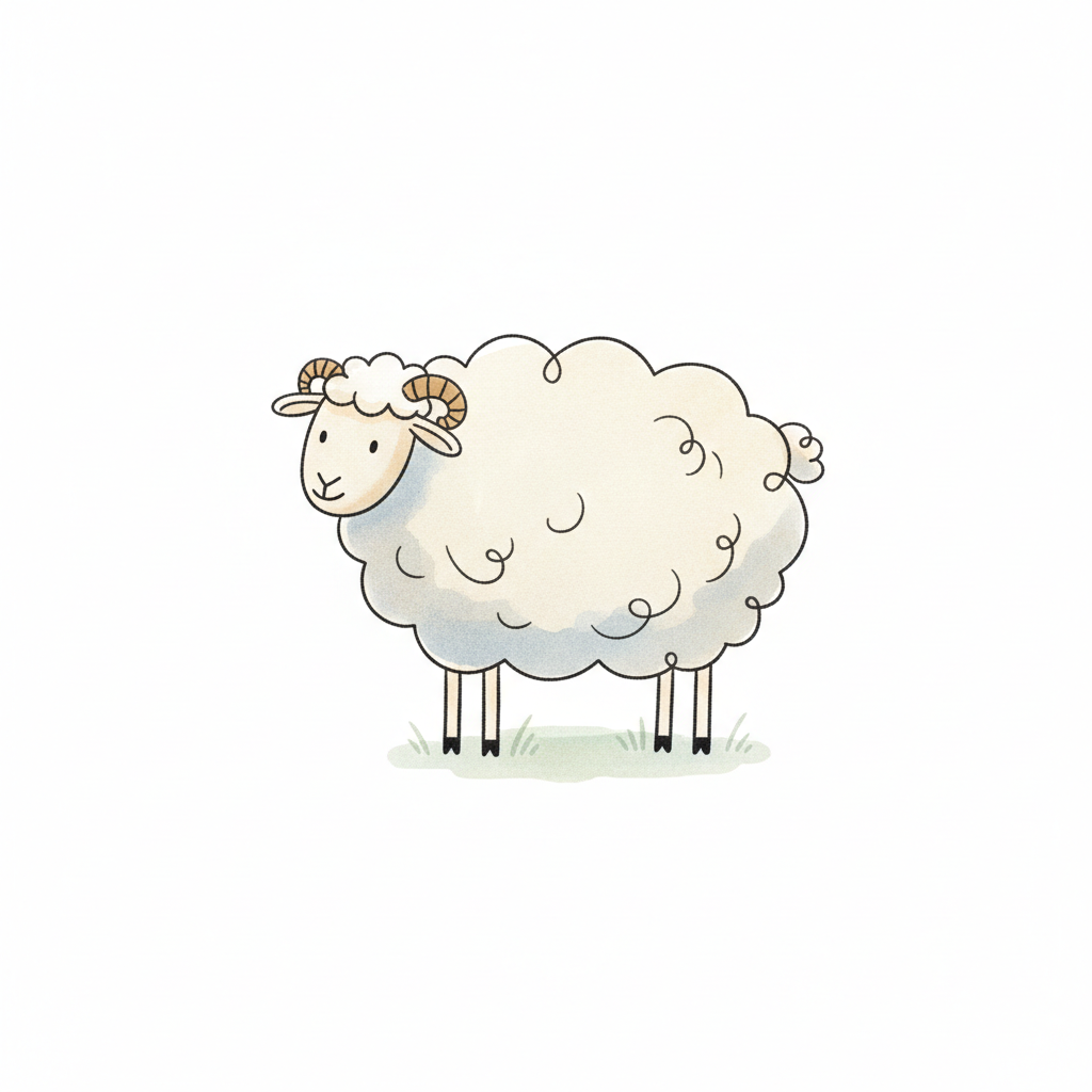 Kuscheliges Schaf mit lockigem Fell und sanften Gesicht.
