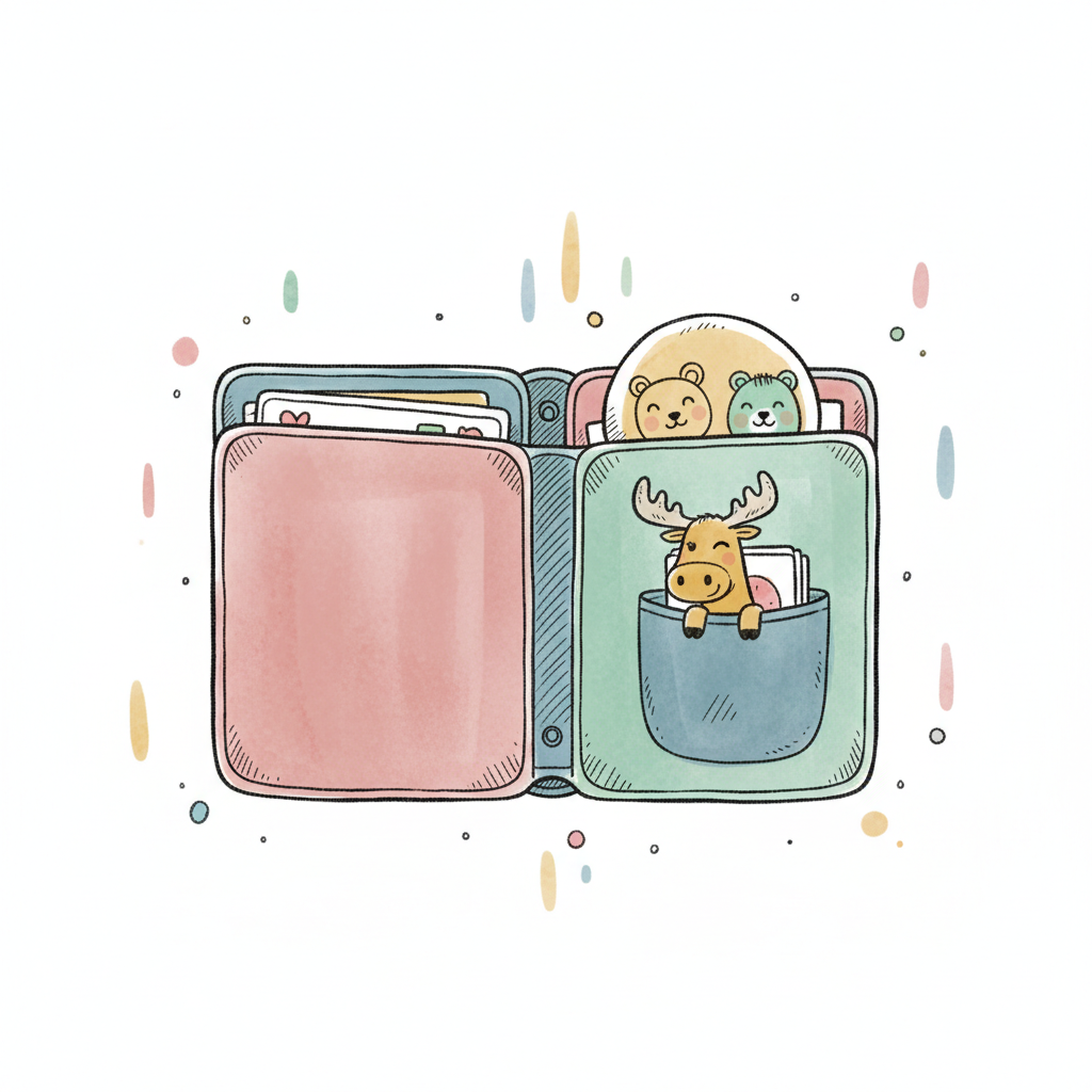 Eine süße Zeichnung eines offenen Portemonnaies mit Tiermotiven.