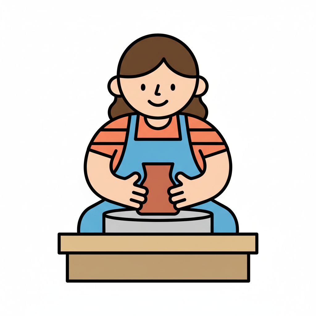 Eine Person formt Ton auf einer Töpferscheibe.