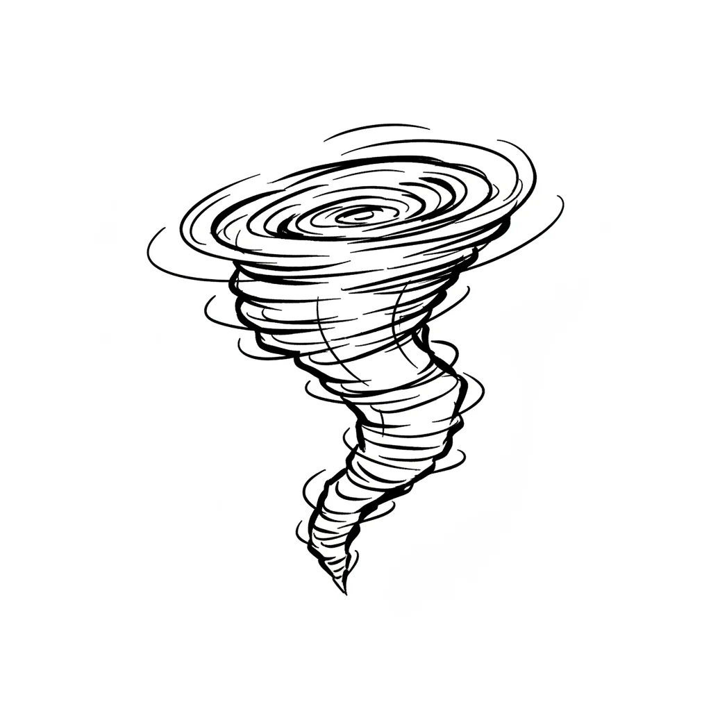 Ein skizzenhaft gezeichneter Tornado in spiralförmiger Form.