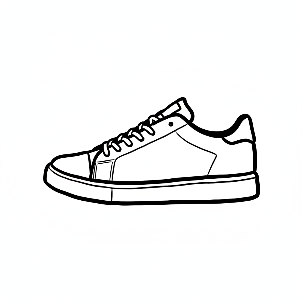 Schwarz-weiße Strichzeichnung eines Sneakers mit Schnürsenkeln, Seitenansicht.