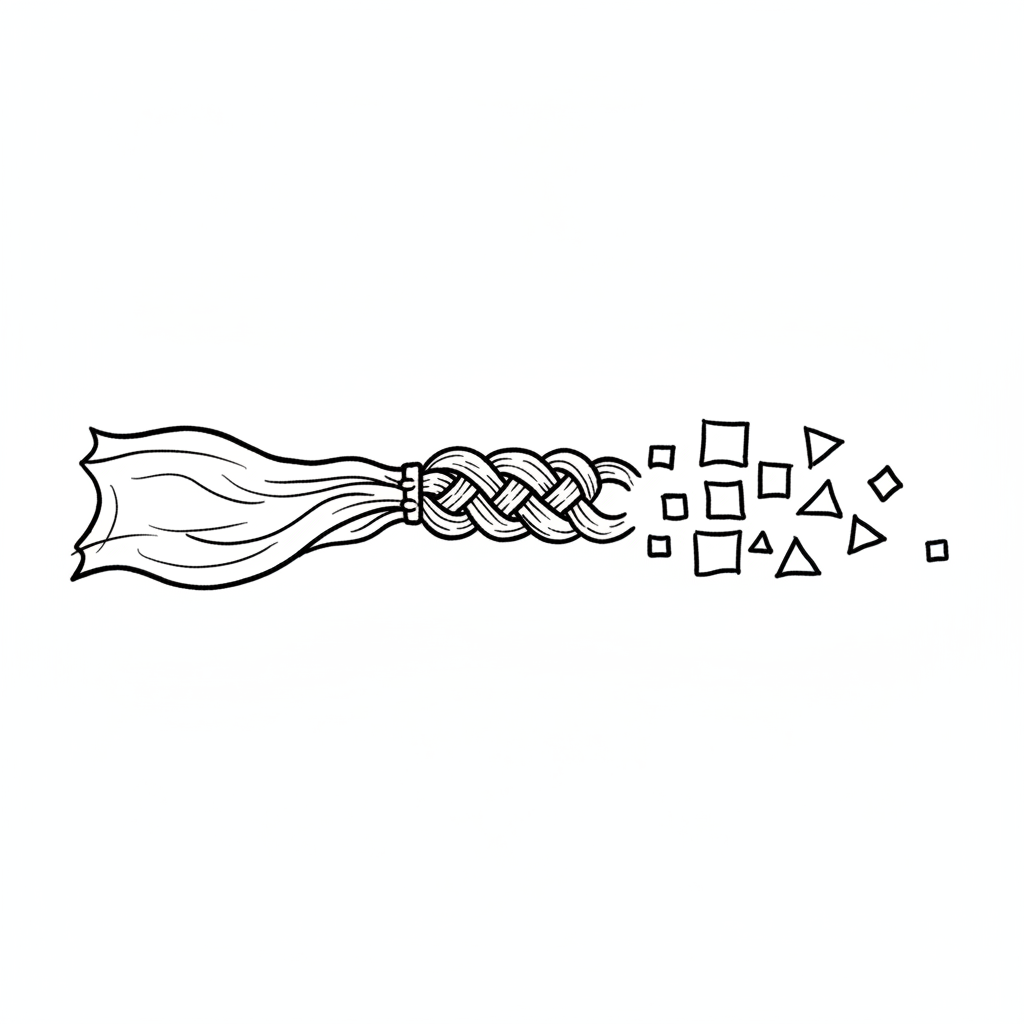 Schwarz-weiße Illustration eines Zopfes, der sich in Quadrate und Dreiecke auflöst.