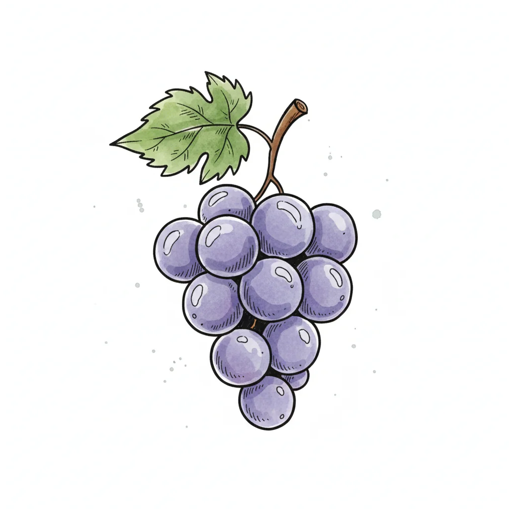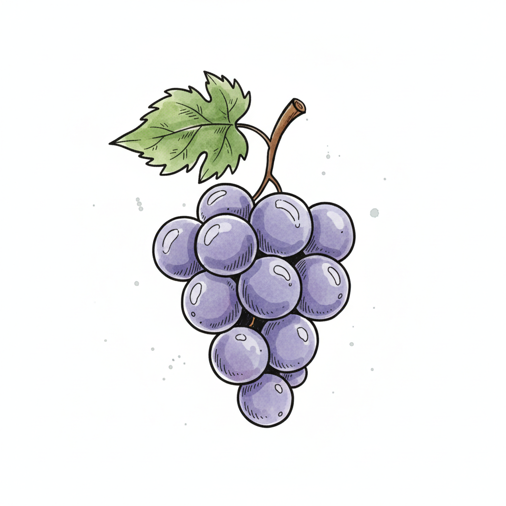 Eine stilisierte Traube mit Blättern auf einem weißen Hintergrund.