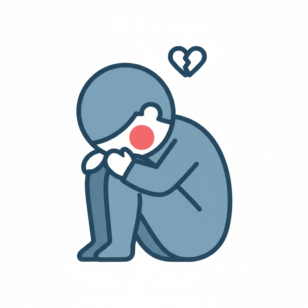 Eine traurige Figur, die zusammengesunken und nachdenklich aussieht.