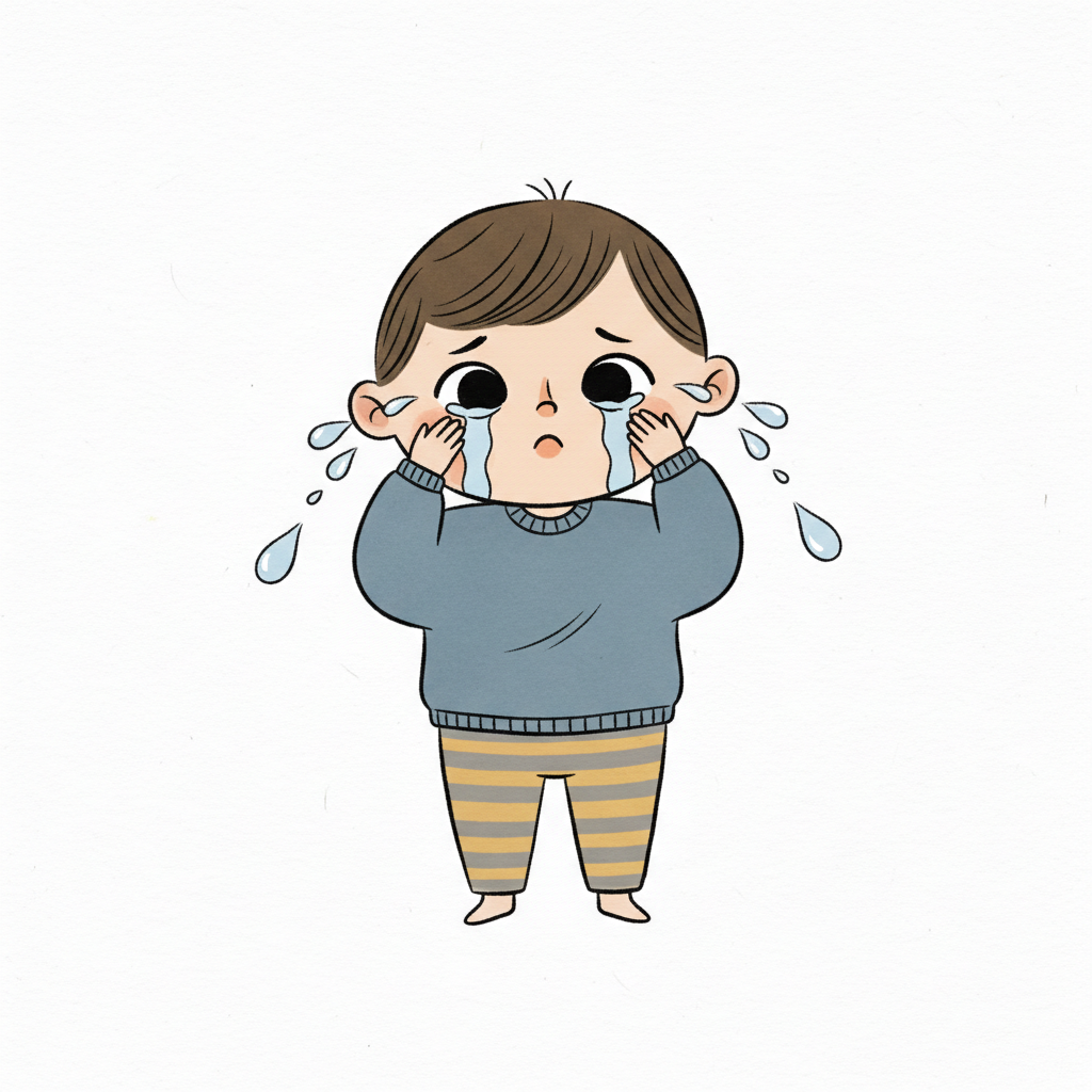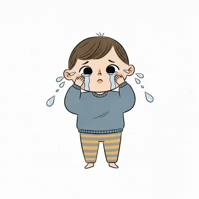 Ein weinendes Kind mit Tränen und traurigem Gesichtsausdruck.