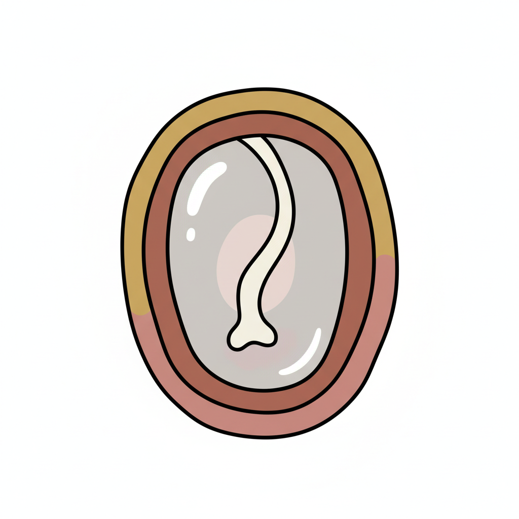 Stilisierter Querschnitt eines Samens mit Keimling und mehreren Schichten.