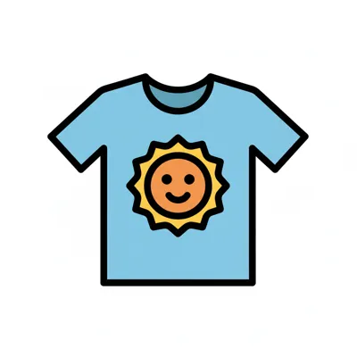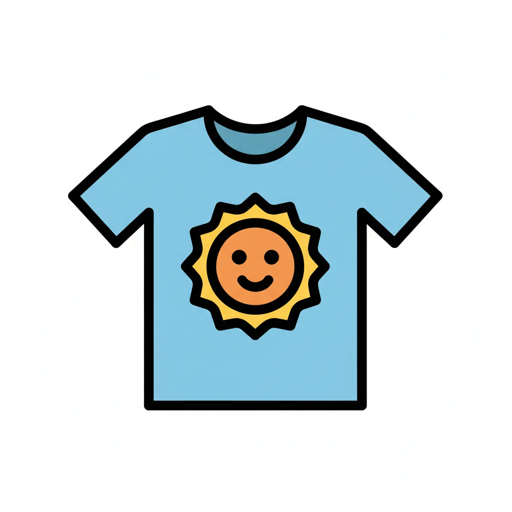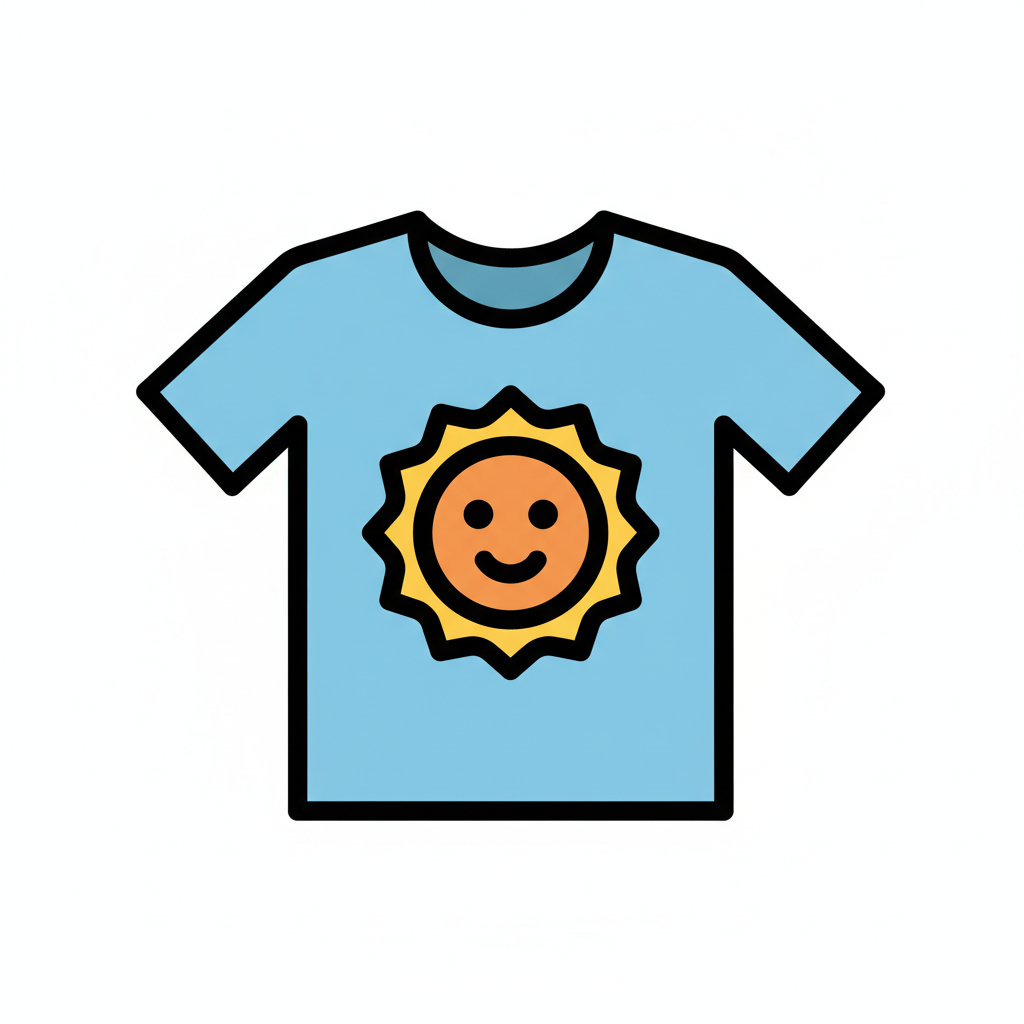 Helles T-Shirt mit sonnigem Gesicht auf blauem Hintergrund.