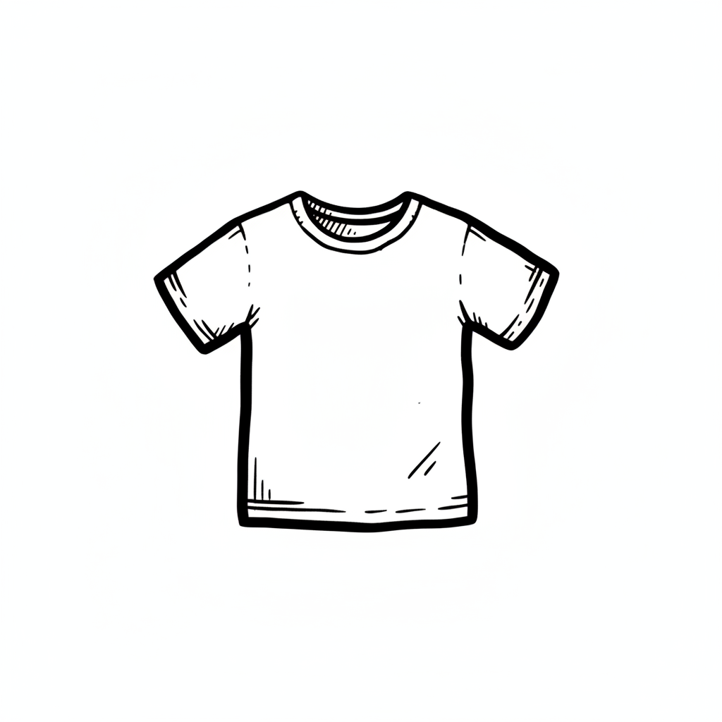 Ein einfaches, skizzenhaftes T-Shirt in Weiß.