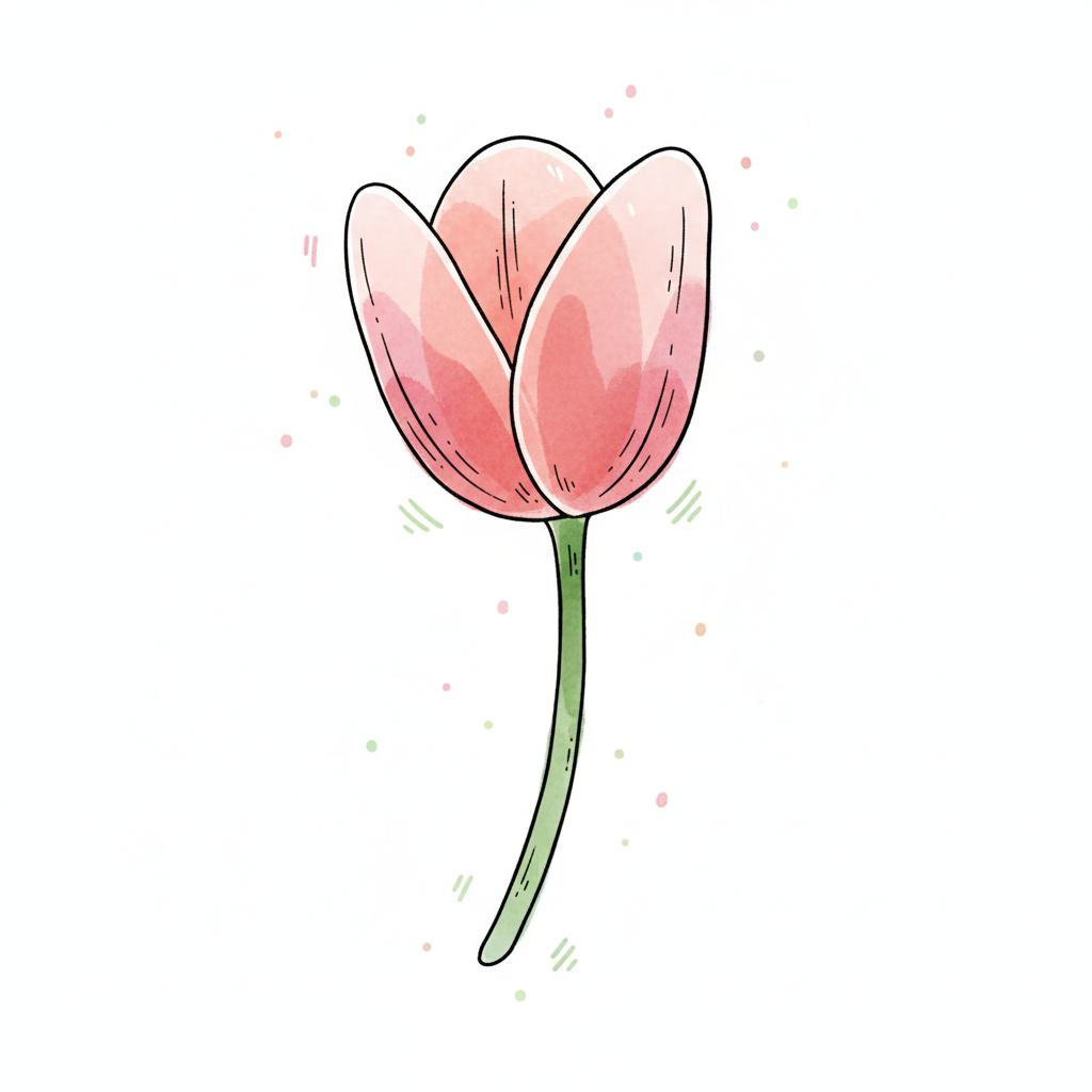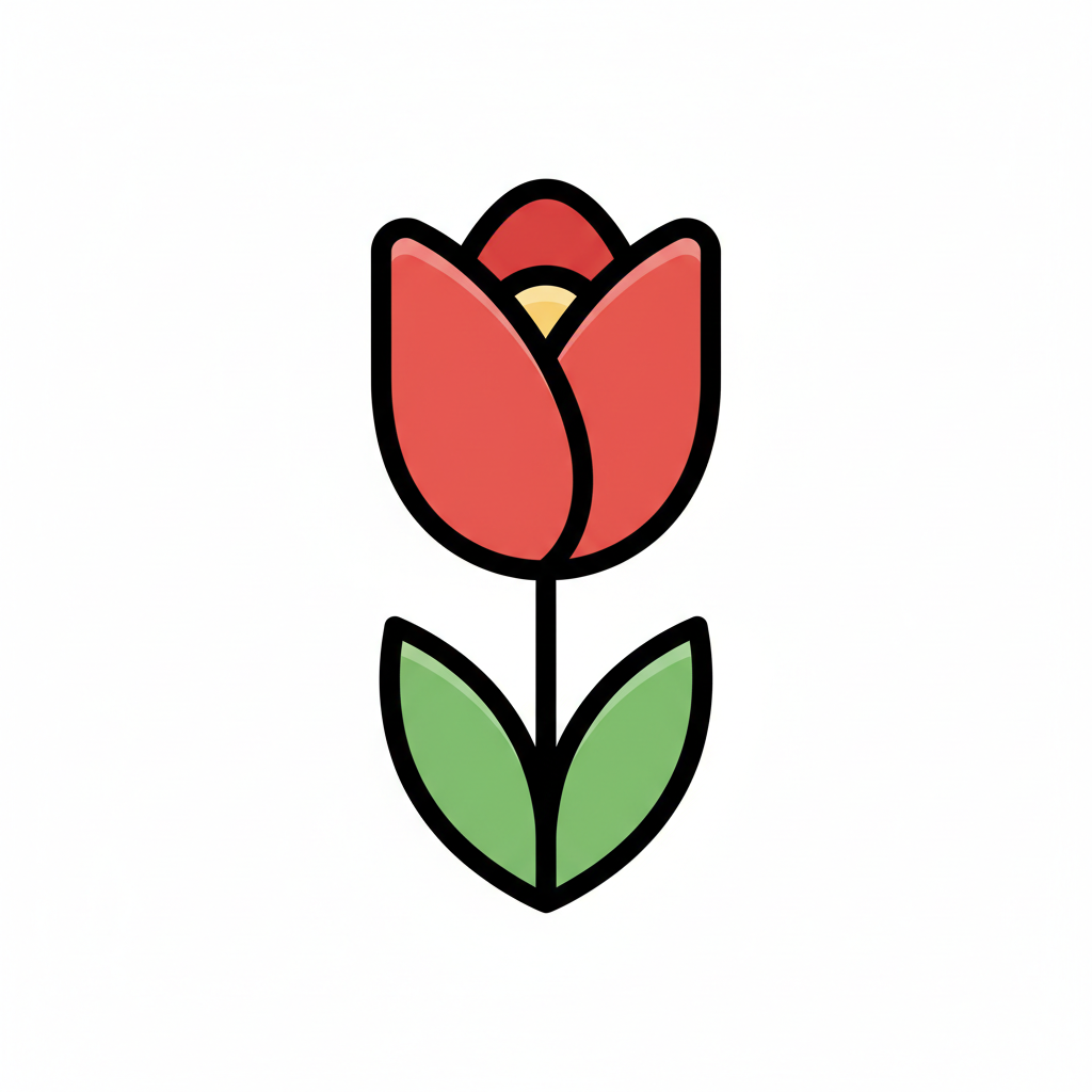 Eine stilisierte, farbige Tulpe mit einem grünen Stängel.