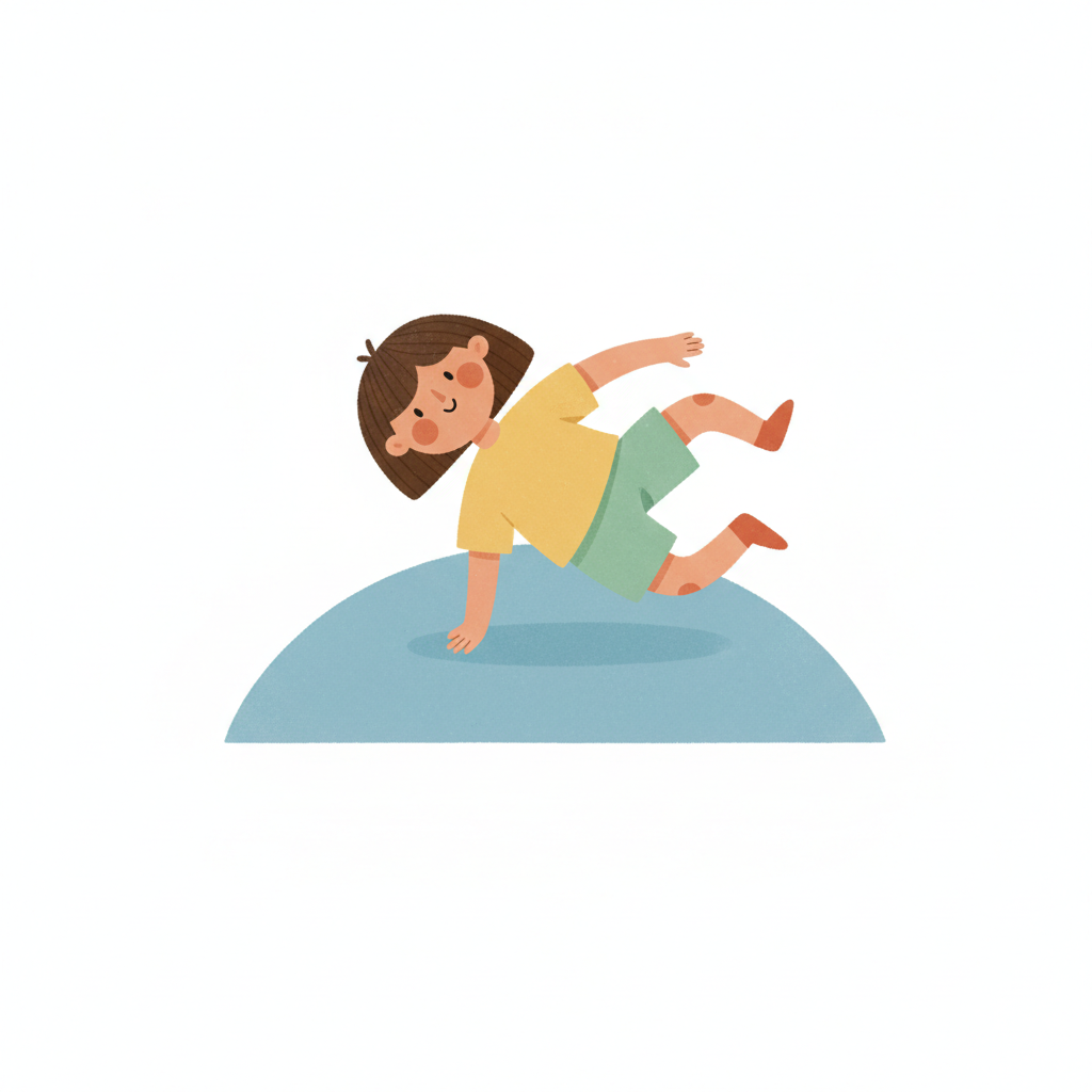 Handgezeichnete Kinderbuchillustration im modernen skandinavisch-nordischen Stil. Minimalistische, freundliche Figur mit einfachen Formen und leicht unregelmäßigen, handgezeichneten Linien. Ruhige, gedeckte Farbpalette, viel freie Fläche, reduzierte Details, sanfte Papier- oder Aquarellstruktur. Warme, ruhige, leicht humorvolle Stimmung, flächige Komposition ohne starke Perspektive, moderner nordischer Illustrationsstil, charmant und zeitlos.