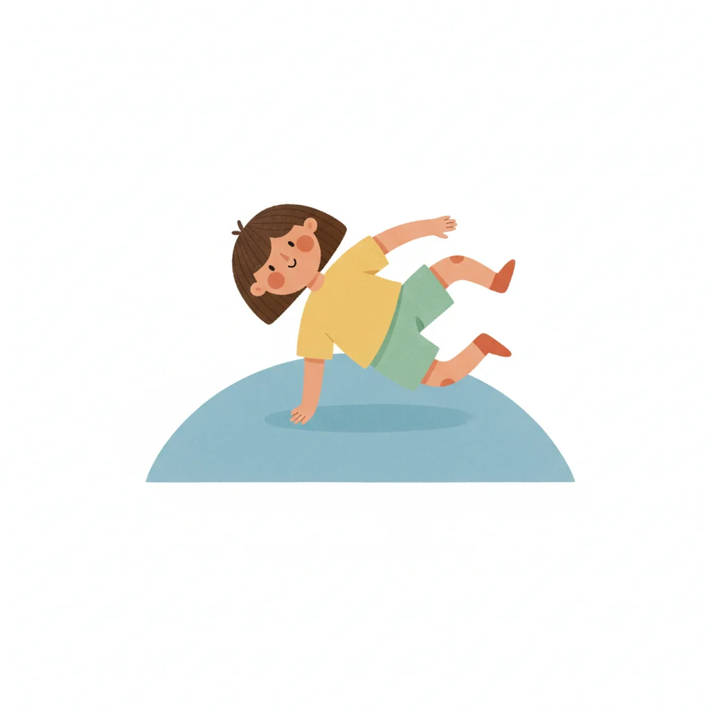 Ein einfaches, cartoonhaftes Kind in einer aktiven Pose.
