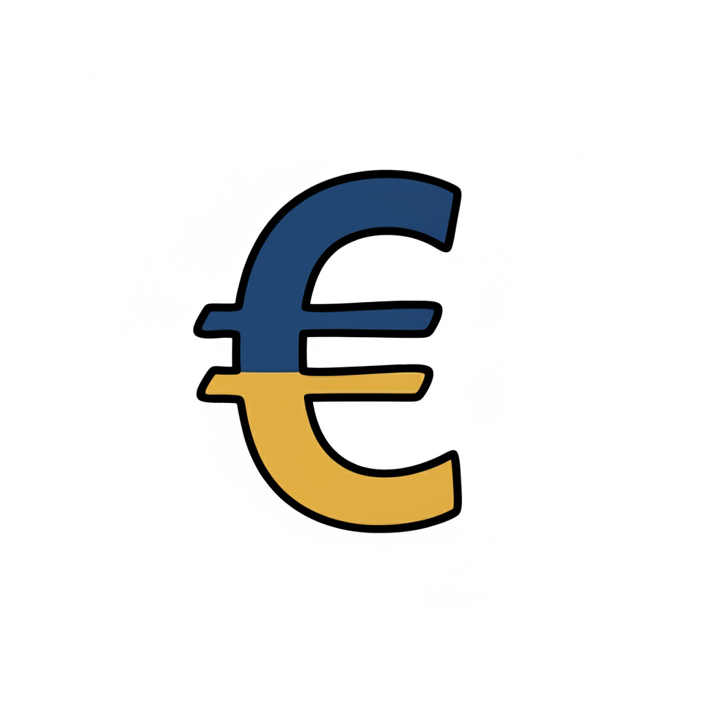 Euro-Symbol in den Farben der ukrainischen Flagge (blau und gelb) auf weißem Hintergrund.