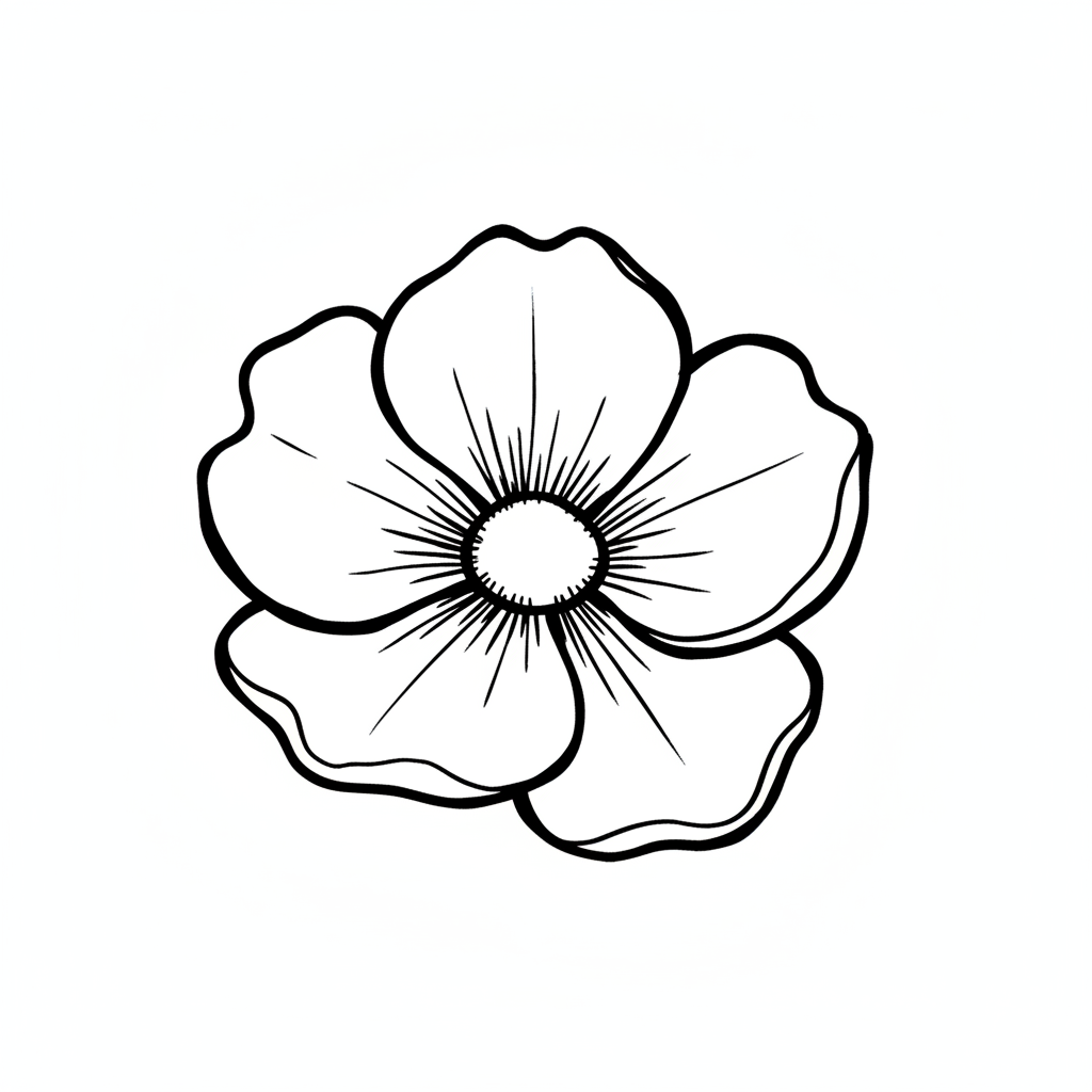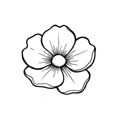 Schlichtes, schwarzes Umrissbild einer Blume mit zarten Blütenblättern.