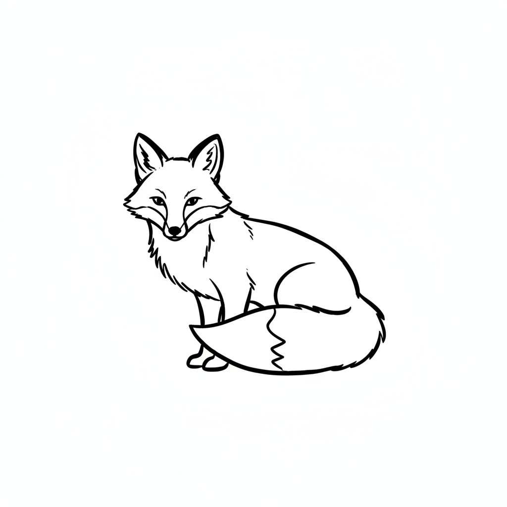 Ein sitzender Fuchs in einfacher, schwarzer Umrisszeichnung.