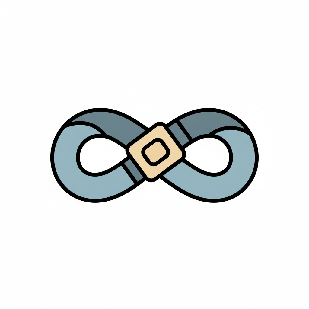 Unendlichkeitszeichen als Gürtel mit Schnalle in Cartoon-Stil auf weißem Hintergrund.