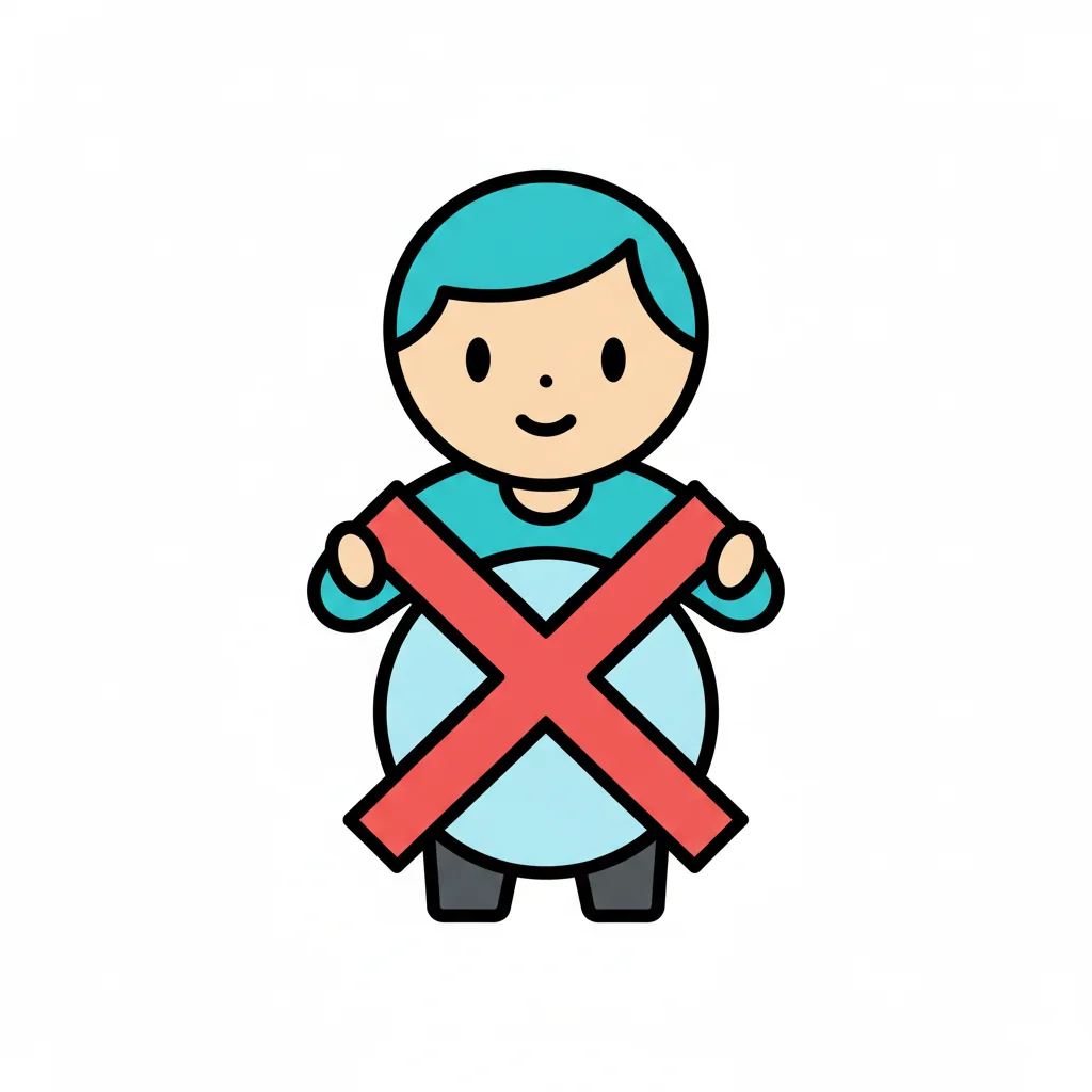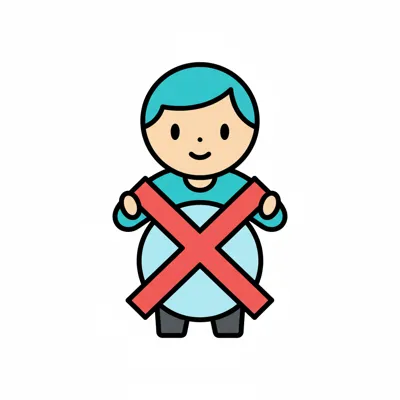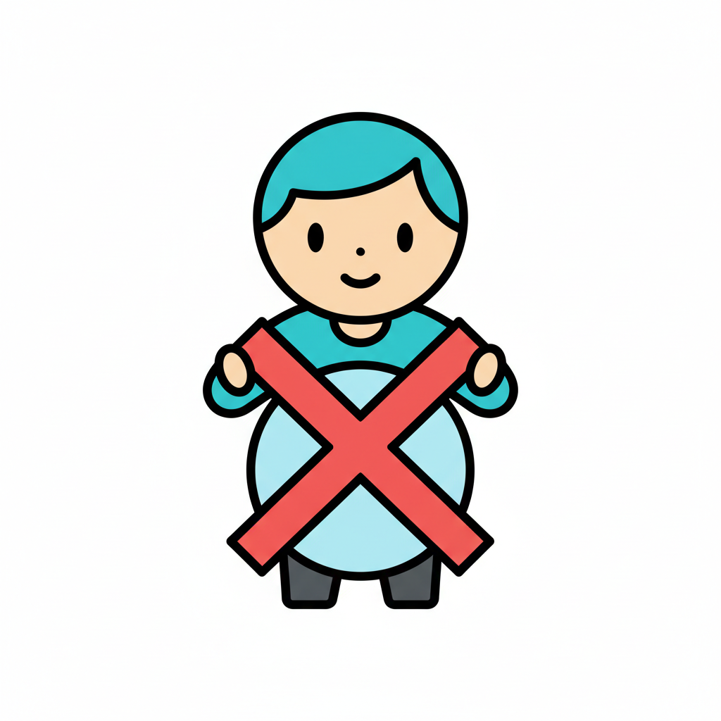 Cartoon-Mensch mit dickem Bauch und rotem X, das Übergewicht oder ungesunde Ernährung ablehnt.