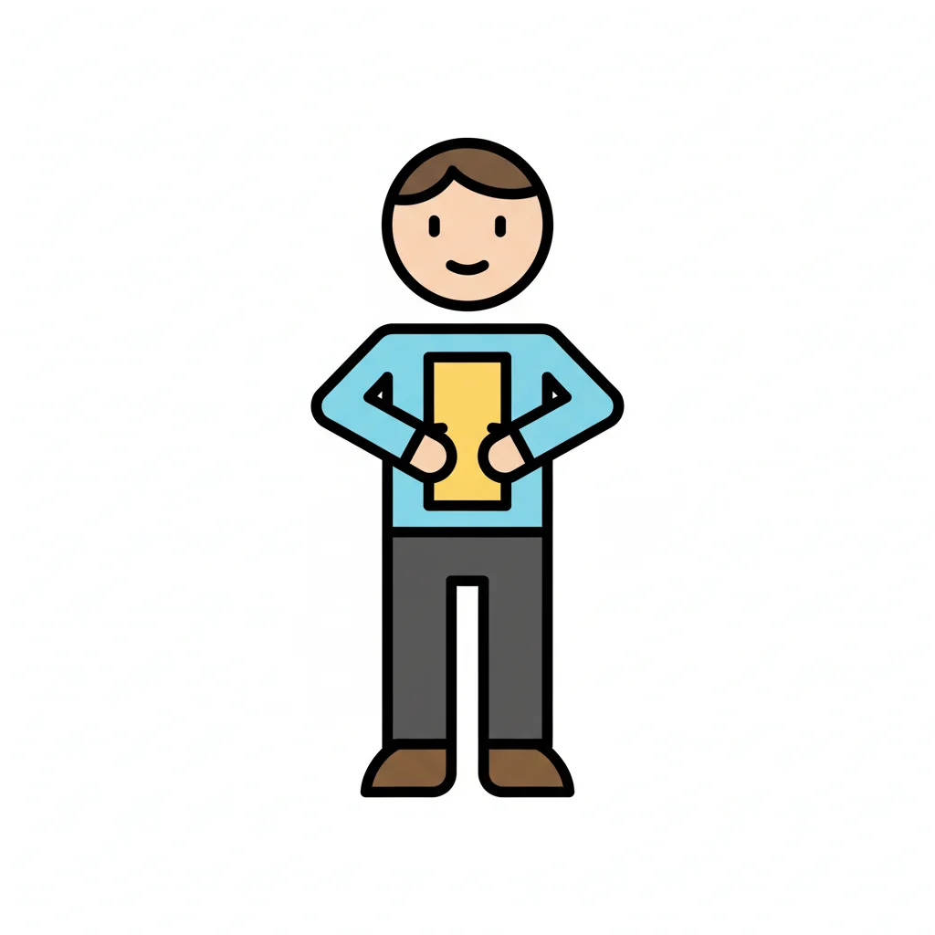 Minimalistische Vektorillustration im flächigen Icon-Stil. Sehr einfache, reduzierte Formen mit klaren, dicken Konturen und wenigen Details. Flächige Farben ohne Verläufe oder Texturen, ruhige Farbpalette, klare Silhouette und gut lesbare, freundliche Figur. Moderne, kindgerechte Lernillustration im Stil einfacher Piktogramme, sauberer Hintergrund und übersichtliche Komposition. Hoher Kontrast, isoliert auf weißem Hintergrund. WICHTIG: KEIN TEXT im Bild. Hintergrund: Rein weiß.