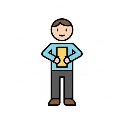Ein lächelnder Mensch hält ein gelbes Rechteck in seinen Händen.