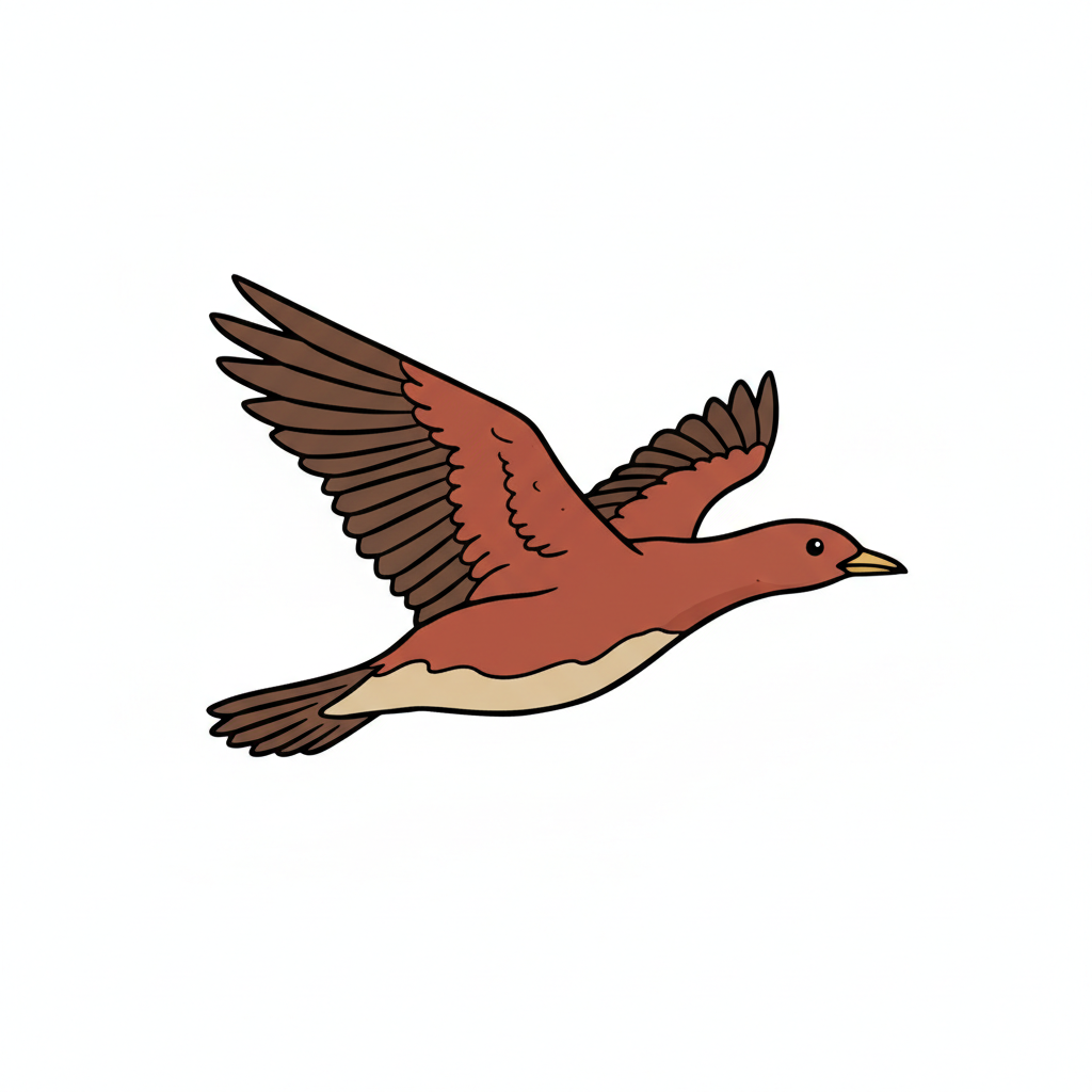 Illustration eines fliegenden Vogels mit braunem Gefieder und hellem Bauch auf weißem Hintergrund.