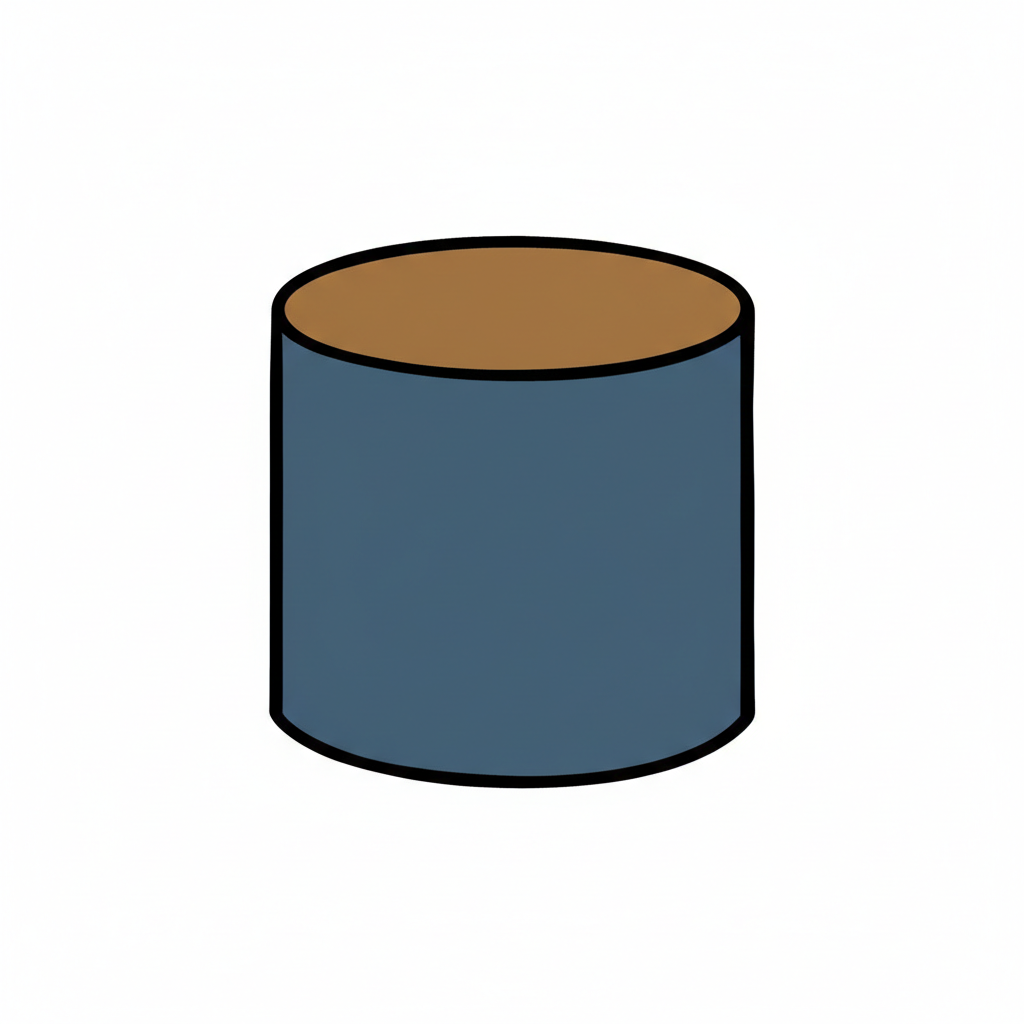 Illustration eines blauen Zylinders mit brauner Oberseite auf weißem Hintergrund.