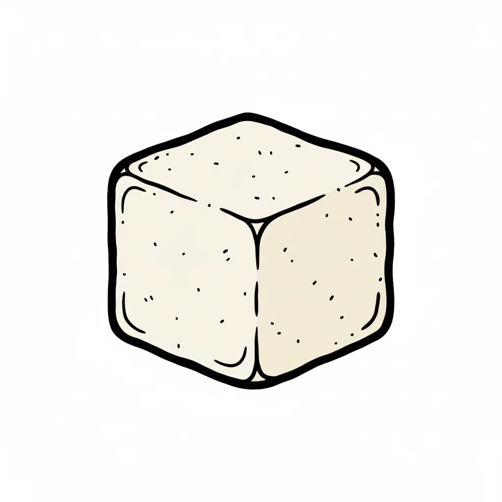 Cartoon-Zuckerwürfel in hellem Beige mit schwarzen Konturen und leichter Textur auf weißem Grund.