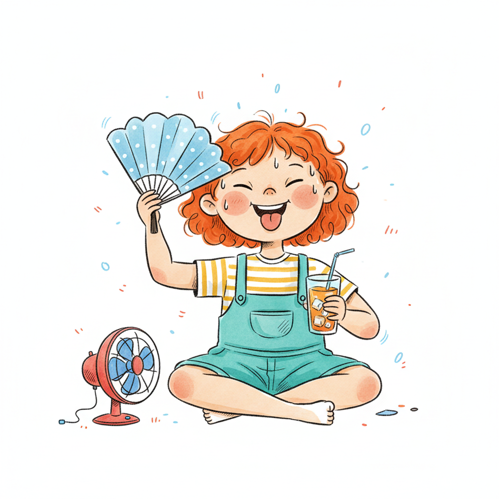 Ein schwitzender Junge kühlt sich mit einem Handventilator ab.