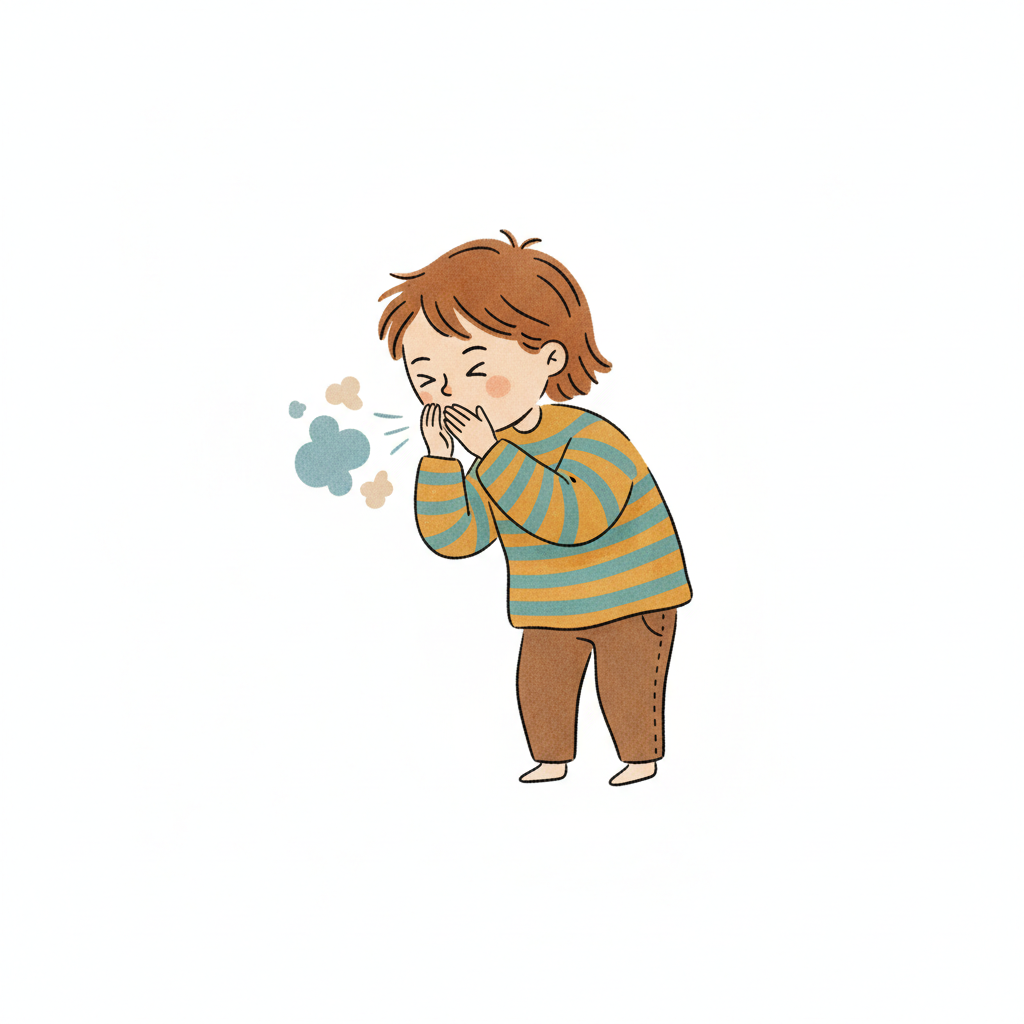 Illustration eines Kindes, das in die Hände hustet oder niest, um Keime zu vermeiden.