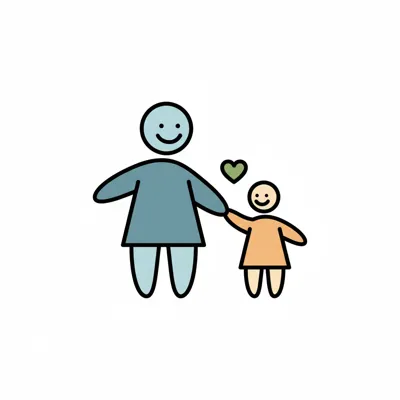 Stilisierte Darstellung einer erwachsenen Person und eines Kindes, die Händchen halten, mit einem Herz.