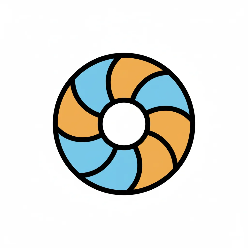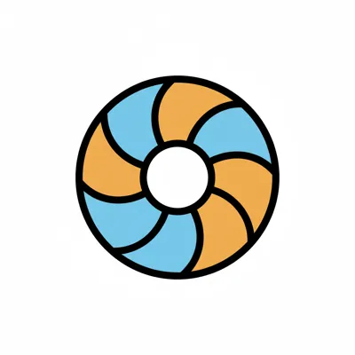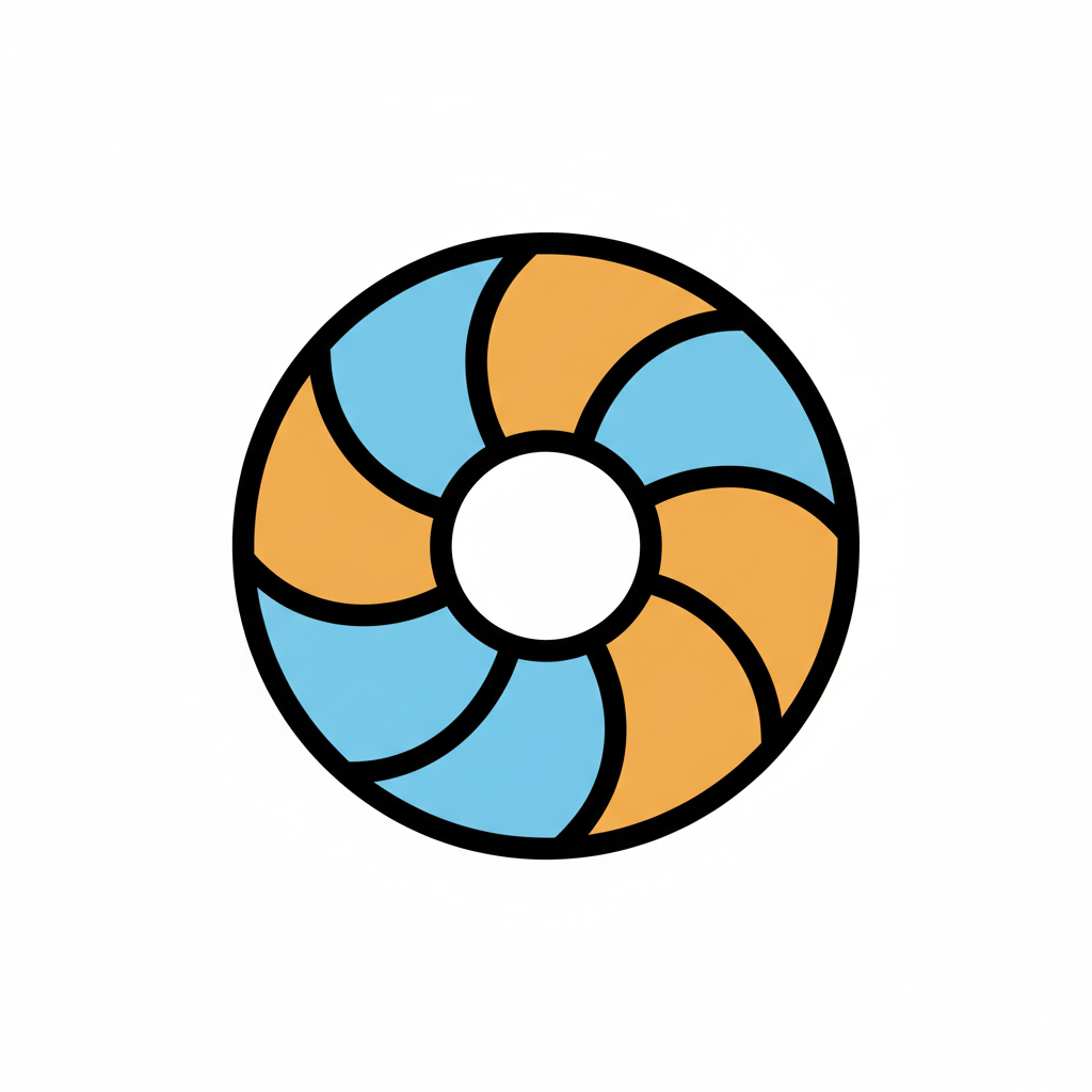 Ein orange-blaues Rettungsring-Symbol mit spiralförmigen Segmenten auf weißem Hintergrund.