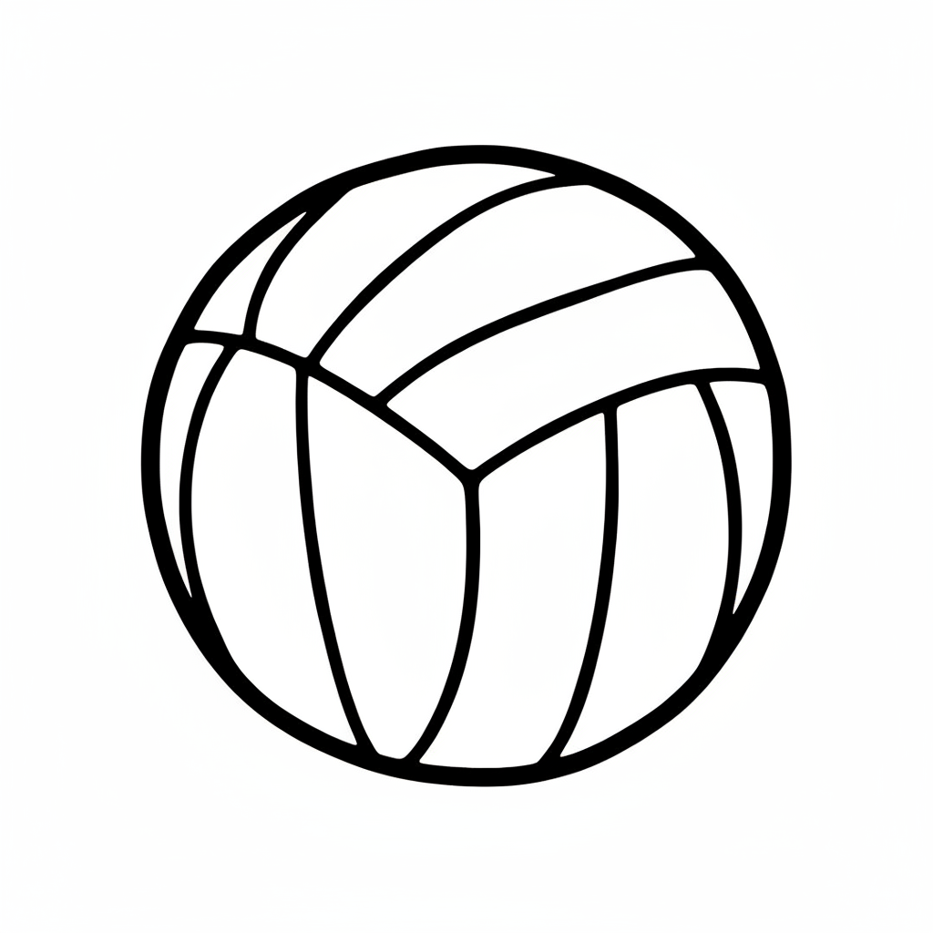Schwarz-weiße Umrisszeichnung eines Volleyballs mit typischem Panel-Design.