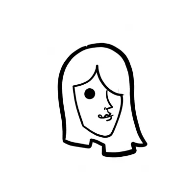 Stilisierte Schwarz-Weiß-Zeichnung eines weiblichen Gesichts im Profil mit Bob-Frisur.