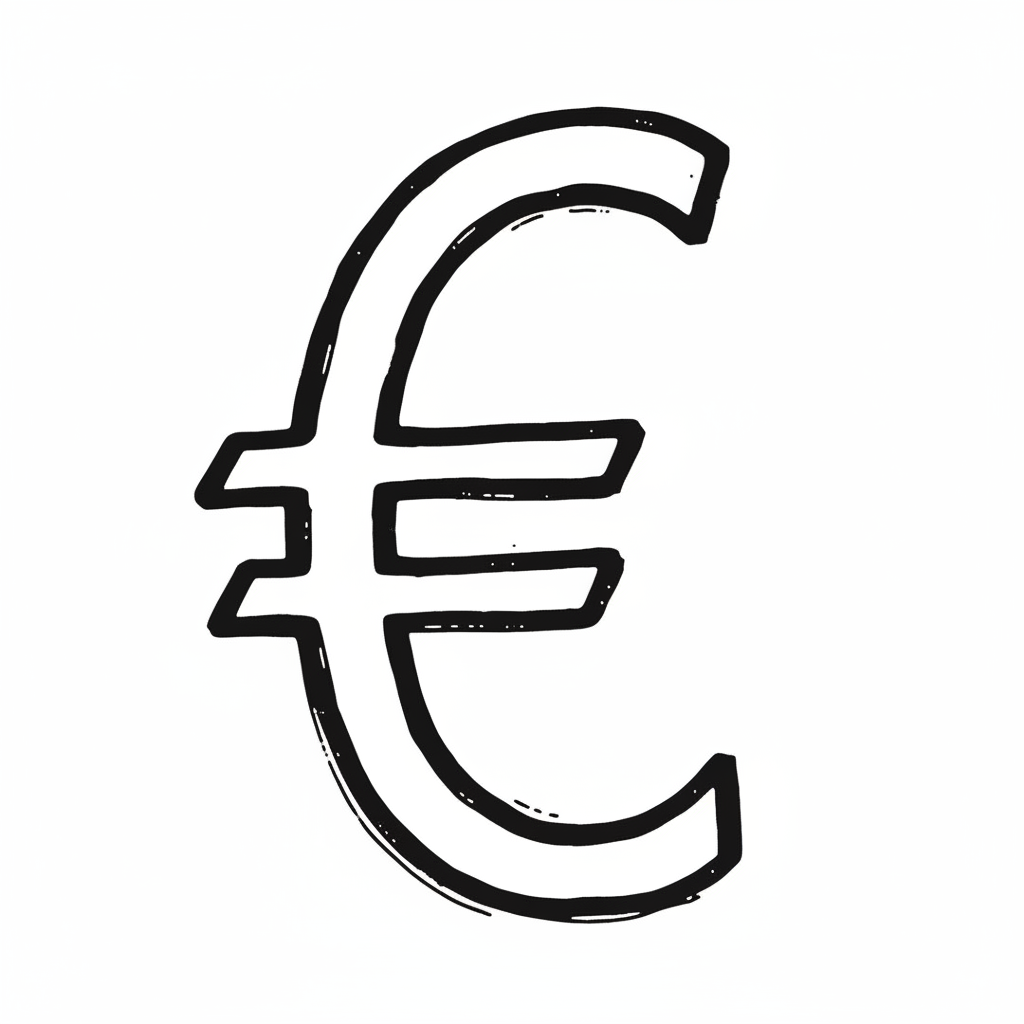 Handgezeichnetes Euro-Symbol in Schwarz auf weißem Hintergrund.