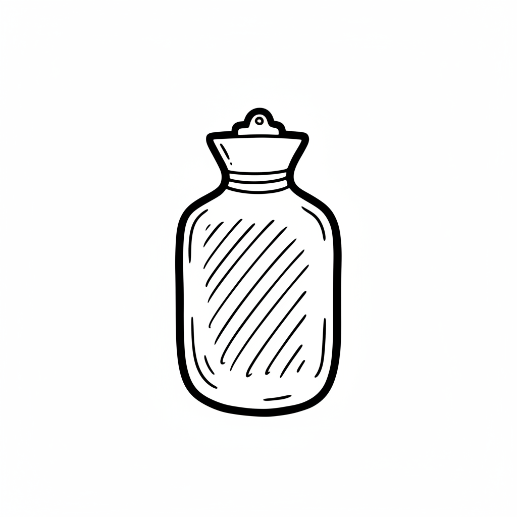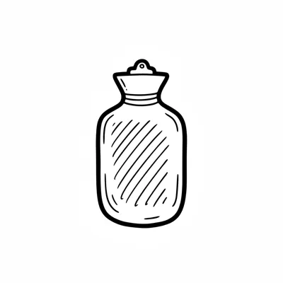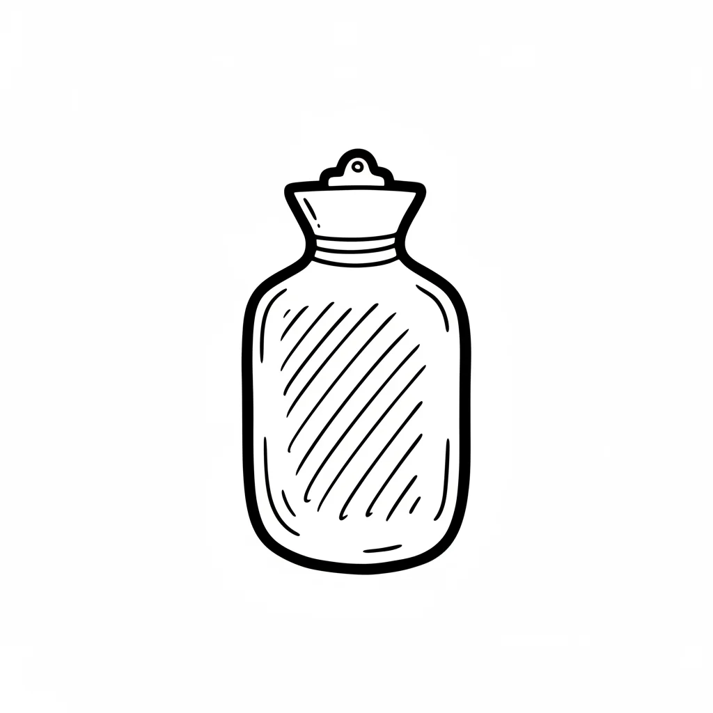 Schwarz-weiße, handgezeichnete Skizze einer Wärmflasche mit diagonalen Linien.