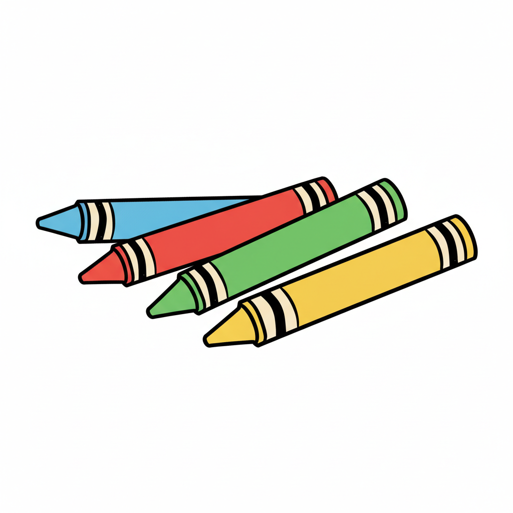 Vier bunte Wachsmalstifte in verschiedenen Farben liegen nebeneinander.