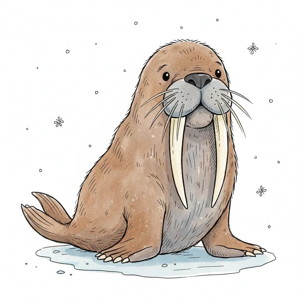 Ein niedlicher Cartoon-Walross mit Bart und freundlichem Gesicht.