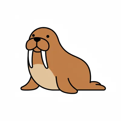 Ein niedlicher, cartoonartiger Walross mit großen Stoßzähnen.