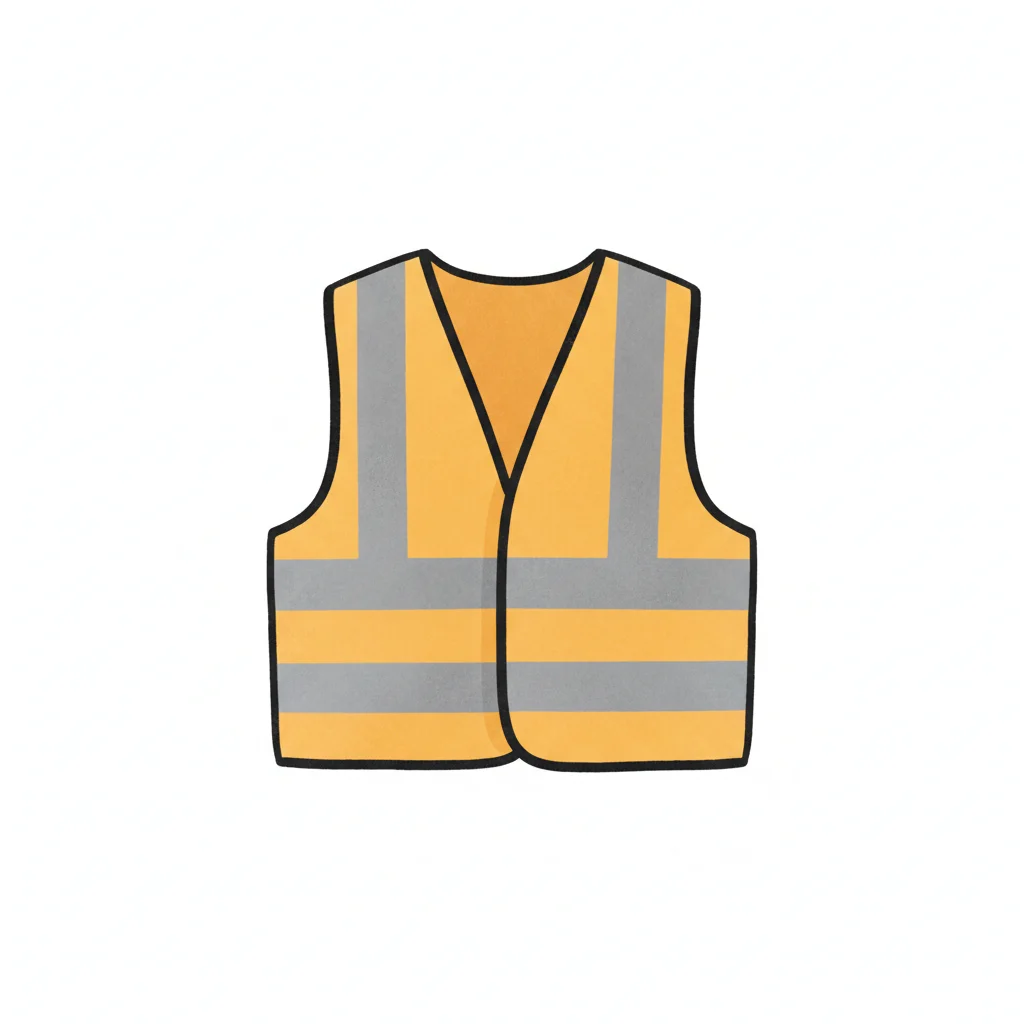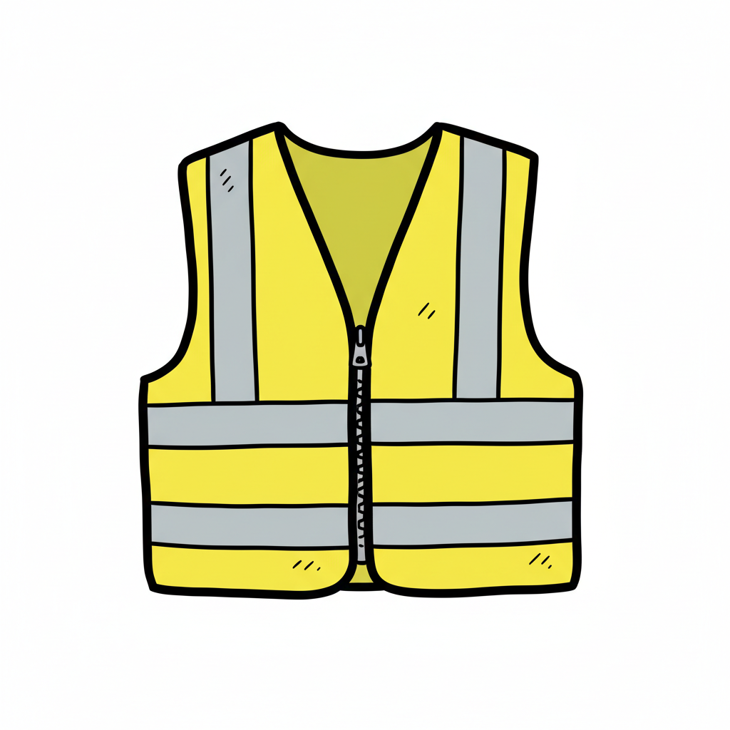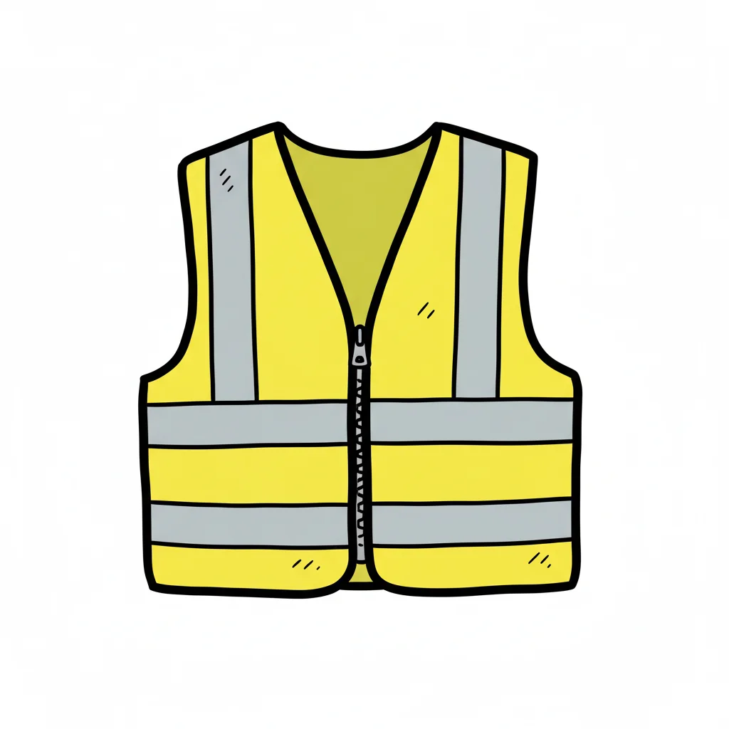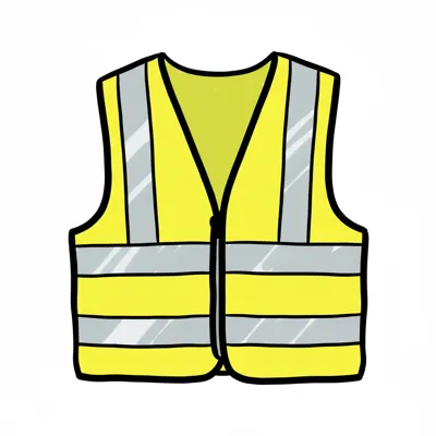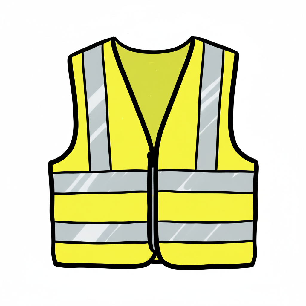 Eine gelbe Warnweste mit reflektierenden Streifen, illustriert im Cartoon-Stil.