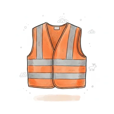 Aquarell-Illustration einer leuchtend orangefarbenen Warnweste mit reflektierenden Streifen.