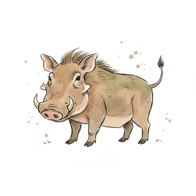 Ein cartoonhaftes Warzenschwein mit markanten Hauern und einem stacheligen Rücken.