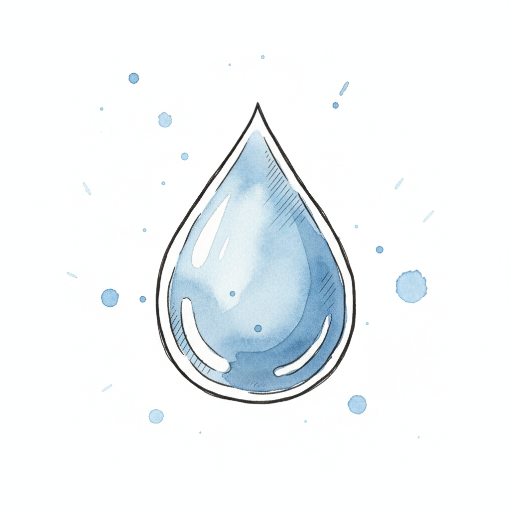 Eine blaue Wassertropfen-Illustration mit spritzenden Wasserfarbeffekten.