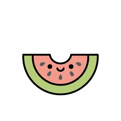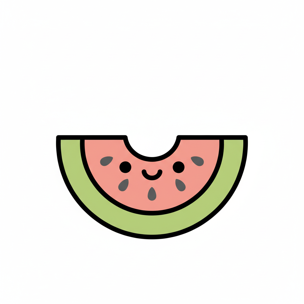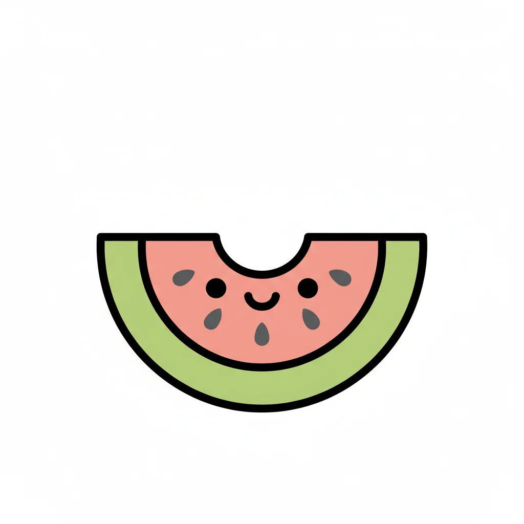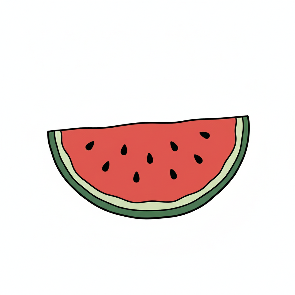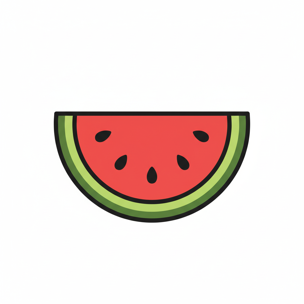 Eine gezeichnete Wassermelonen-Scheibe mit Kernen.