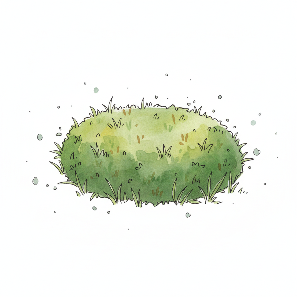 Grüner Grasbüschel in Aquarell-Optik, weich gezeichnet mit kleinen Spritzern.