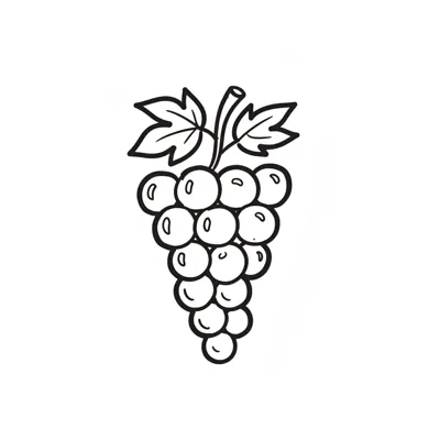 Stilisierte Traube mit Blättern in Schwarzweiß.
