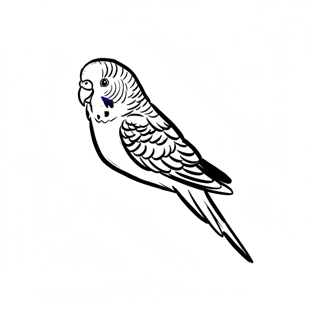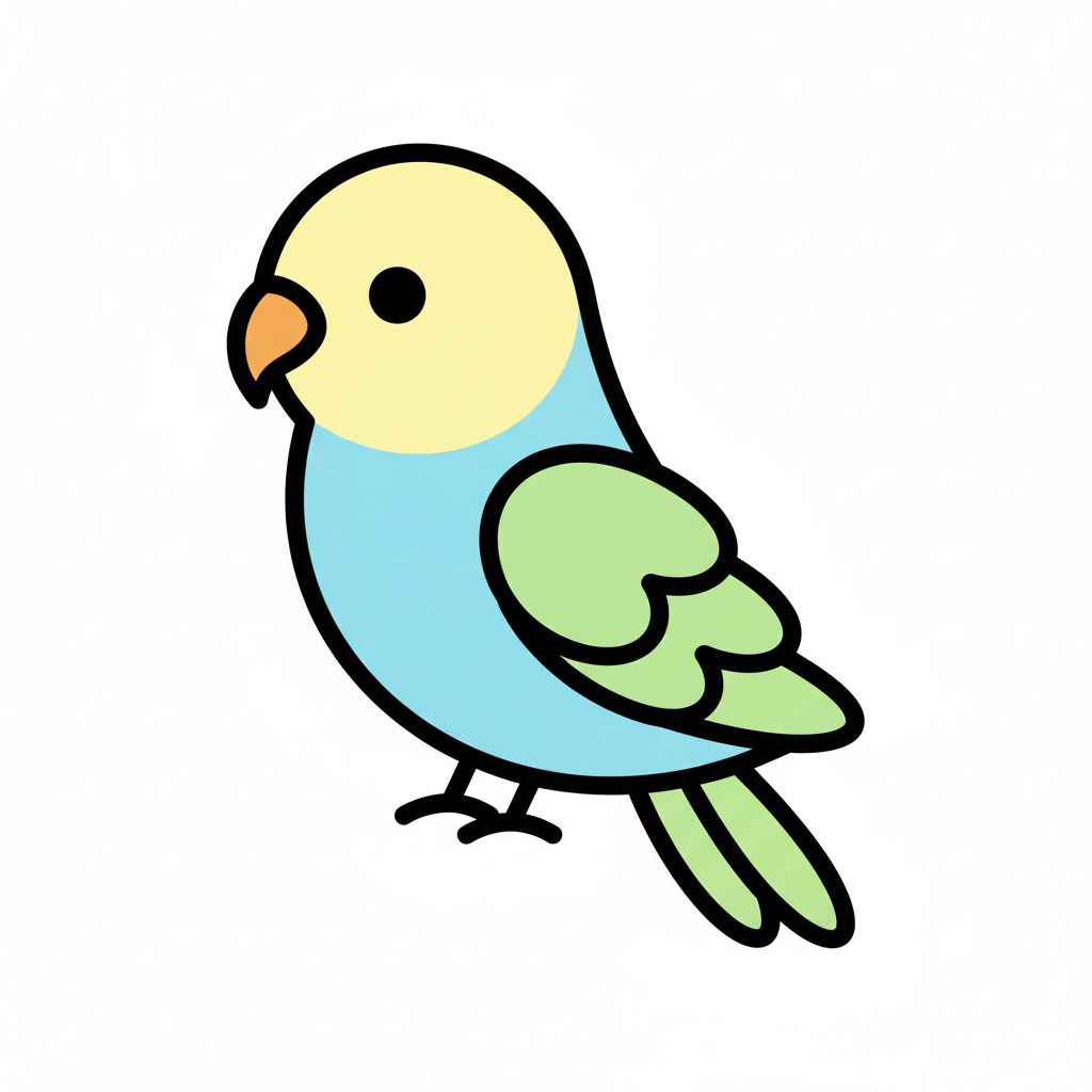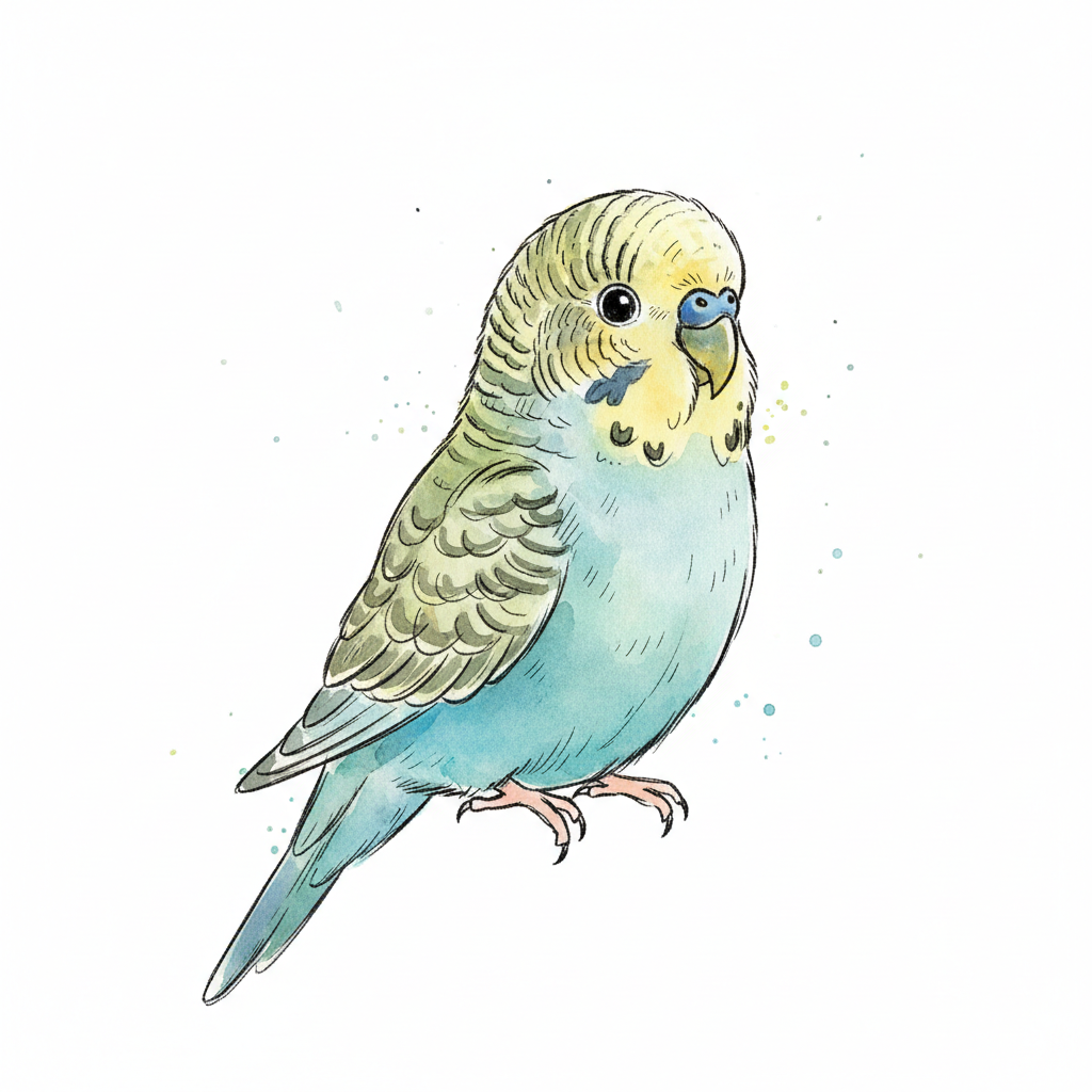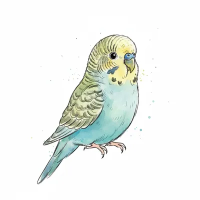 Eine bunte, gezeichnete Wellensittich-Illustration mit zarten Farben.