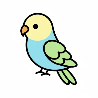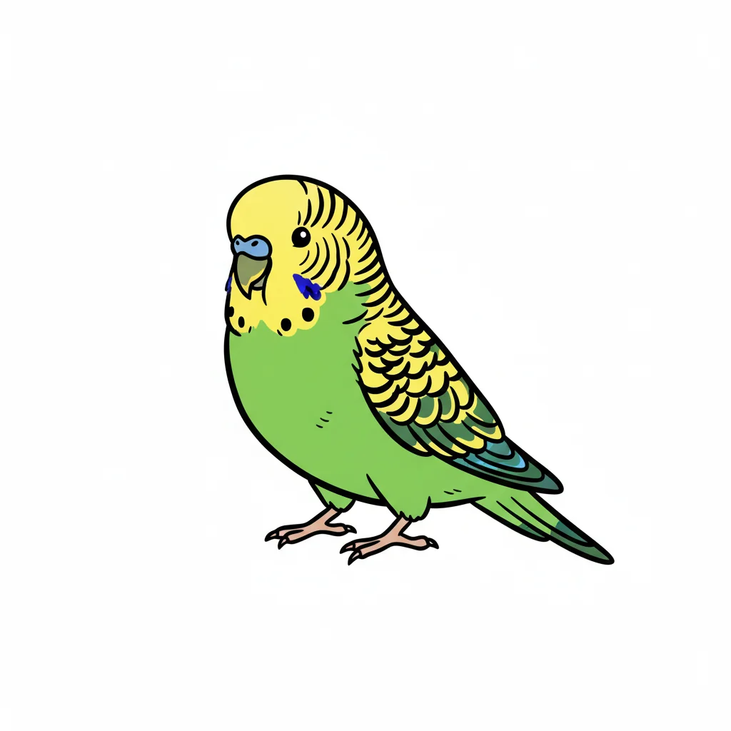 Ein bunter, cartoonartiger Wellensittich mit grünen und blauen Federn.